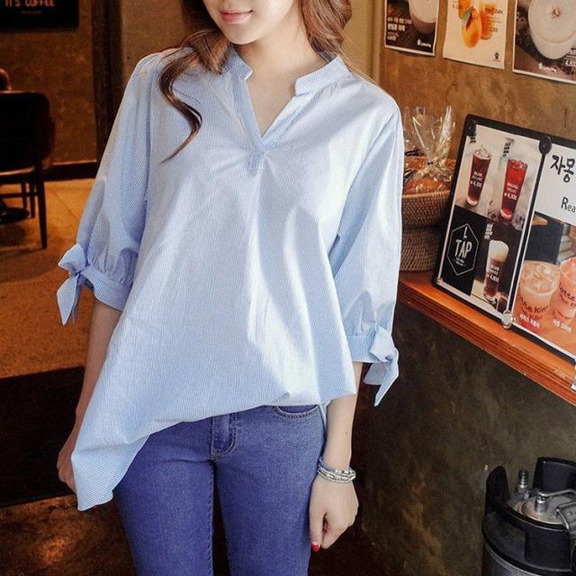 レディース ブラウス 春夏 五分袖ブラウス ブラウス オシャレ シャツ vネック オシャレフォーマル OL トップス ゆったり 通勤 リボンブラウス 大人 ブラウス