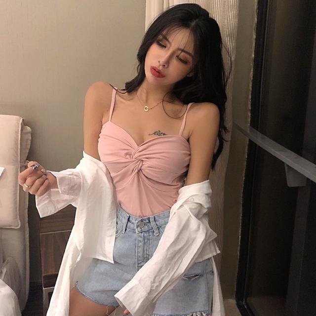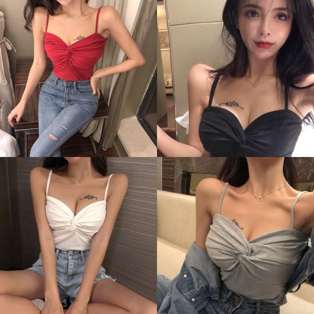 夏サマー キャミソール Vネック タンクトップ ノースリーブトップス インナー 夏サマー 無地 タイト 上着 カシュクール 女性 レディース