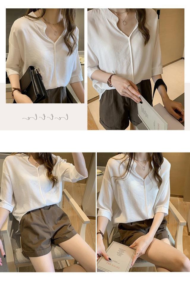 ブラウス ブラウス 春夏 レディース オシャレフォーマル ブラウス シャツ vネックブラウス ブラウス ゆったり 五分袖 通勤 OL オシャレ トップス