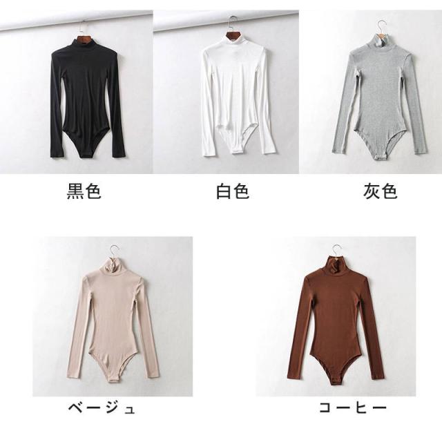 ハイネック レディース セクシー 長袖 トップス ボディースーツ ハイネック 肌着 インナー 着痩せ オールインワン 女性用 通勤 ボディトップス