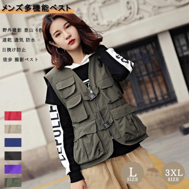 アウトドア カジュアル 作業ベスト大きいサイズ 男女兼用多機能ベスト春夏 ベスト カジュアル 通気性