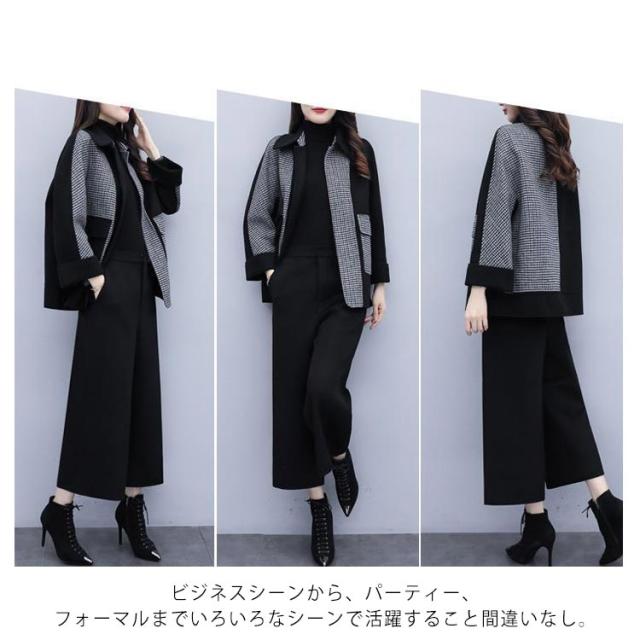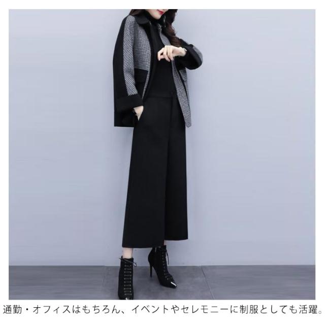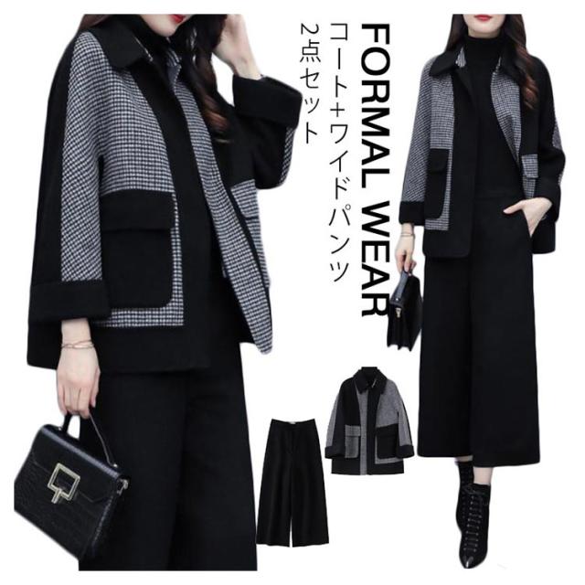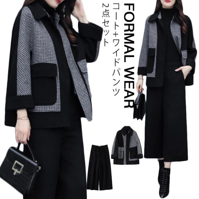 フォーマル パンツスーツ コート+ワイドパンツ フォーマル ワイドパンツ 2点セット ビジネススーツ 長袖 セットアップ スーツセット ビジネス エレガント フェミニン フォーマル 通勤 レディース オフィス 入学式 卒業式 春 ウェア