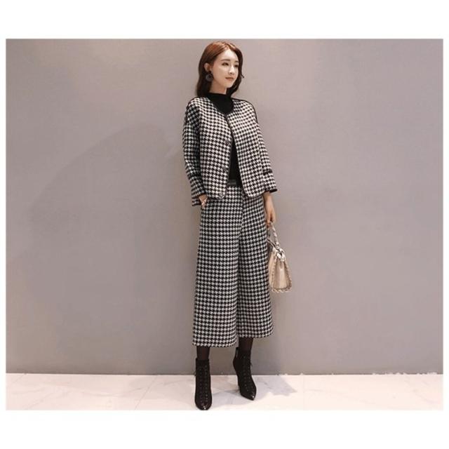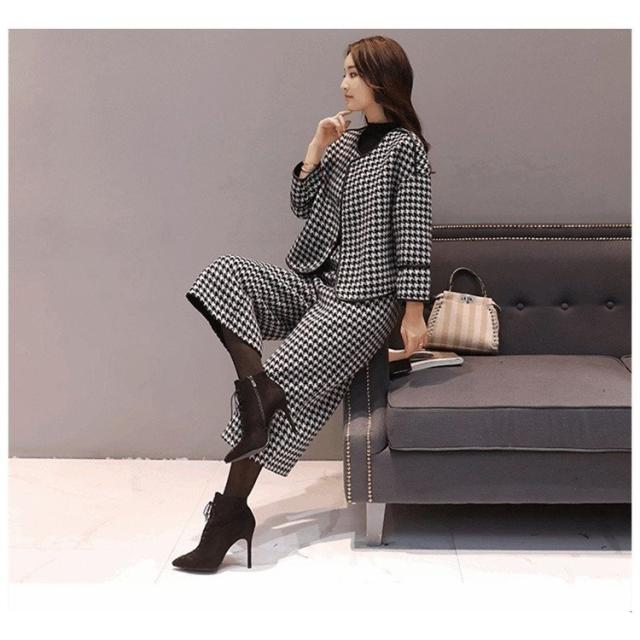 パンツスーツ 卒業式 セットアップ ラシャ レディース フォーマル 千鳥格子柄 ガウチョパンツ 結婚式 カッコいい ジャケット 入学式 おしゃれ 通勤 春 セットアップ