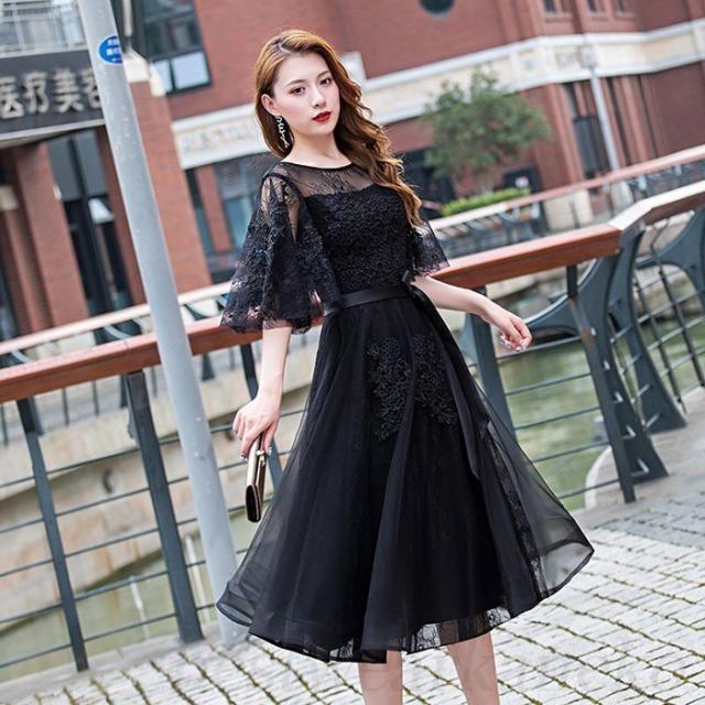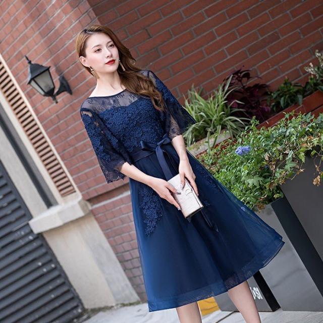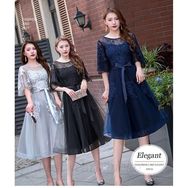 40代 50代 20代 おしゃれ 結婚式フォーマルドレス レース 30代 ひざ丈 結婚式フォーマルドレス ドレス ワンピース二次会 演奏会 袖あり 体型カバー
