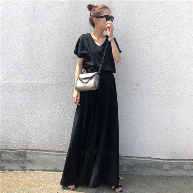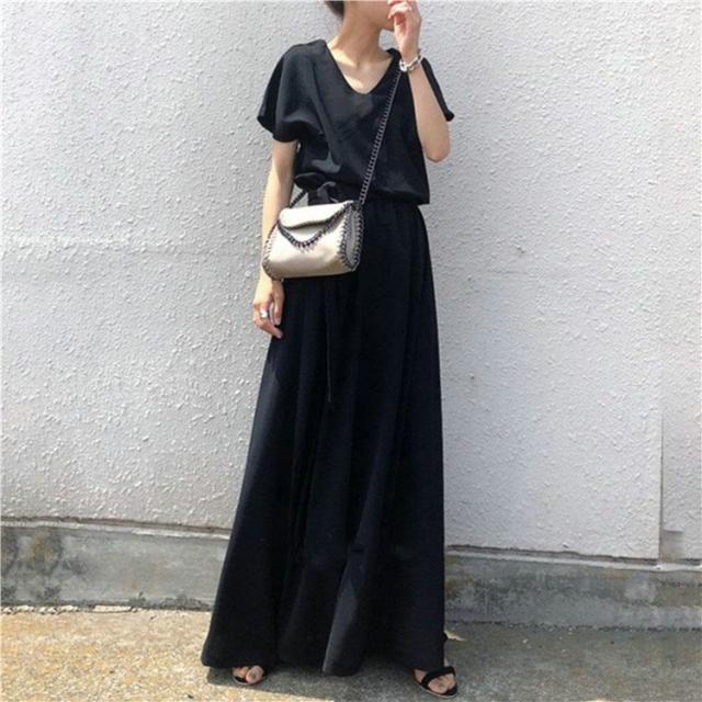 vネック 無地 40代 マキシワンピース ワンピース ロング丈 レディース 半袖 黒 二次会 30代50代 マキシワンピース
