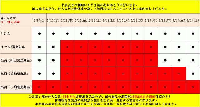 | ●サイズ詳細等の測り方はスタッフ間で統一、徹底はしておりますが、実寸は商品によって若干の誤差(1cm〜3cm )がある場合がございますので、予めご了承ください。 ●製造ロットにより、細部形状の違いや、同色でも色味に多少の誤差が生じます。 ●パッケージは改良のため予告なく仕様を変更する場合があります。 ▼商品の色は、撮影時の光や、お客様のモニターの色具合などにより、実際の商品と異なる場合がございます。あらかじめ、ご了承ください。 ▼生地の特性上、やや匂いが強く感じられるものもございます。数日のご使用や陰干しなどで気になる匂いはほとんど感じられなくなります。 ▼同じ商品でも生産時期により形やサイズ、カラーに多少の誤差が生じる場合もございます。 ▼他店舗でも在庫を共有して販売をしている為、受注後欠品となる場合もございます。予め、ご了承お願い申し上げます。 ▼出荷前に全て検品を行っておりますが、万が一商品に不具合があった場合は、お問い合わせフォームまたはメールよりご連絡頂けます様お願い申し上げます。速やかに対応致しますのでご安心ください。 | |
