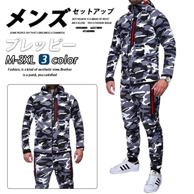 カモフラ 上下セット セットアップ メンズ スウェット上下 ジャージ スエット上下 パンツ 普段着 ルームウェア スポーツウェア セットアップ パーカー