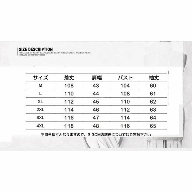 | サイズについての説明 | 【サイズ】詳細図のサイズ表写真にてご参照ください。 【商品紹介】 冬物感バッチリの商品で、首元まで暖かくなるようにデザインされたフードが現代的なシルエットを演出します。 【商品を購入する前にご注意】 パソコンの環境により画面上と実物では多少色具合が異なって見える場合もございますが予めご了承ください; サイズは手作り測量しますので、サイズが少し誤差がございますが、ご了解してくれてありがとうございます。 |