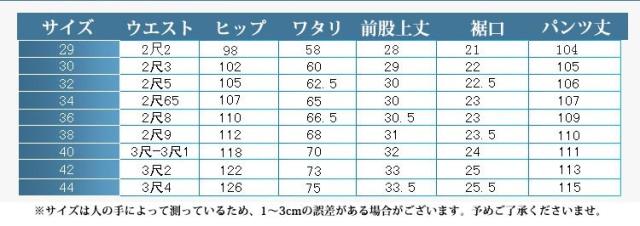 | サイズ | 29インチ 30インチ 32インチ 34インチ 36インチ 38インチ 40インチ 42インチ 44インチ |
