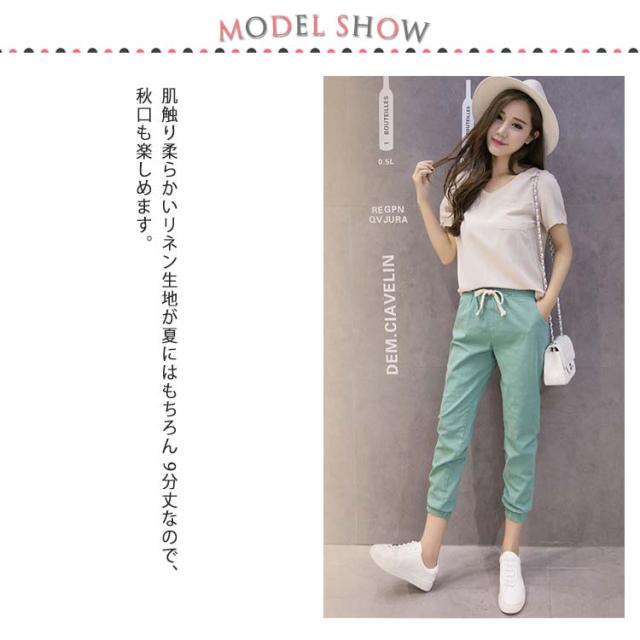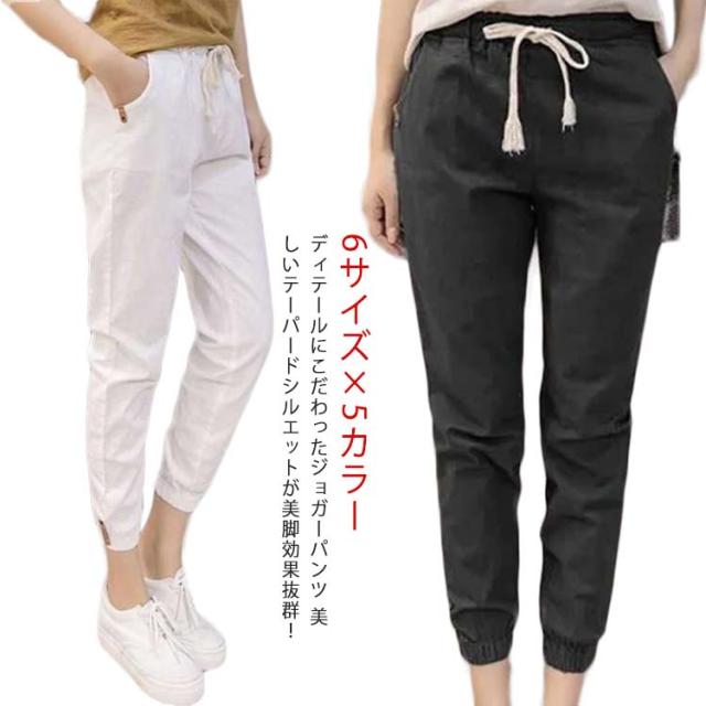 ジョガーパンツ レディース 七分丈 ウェストゴム リネンパン 麻パン 綿麻パンツ カプリパンツ サルエルパンツ ジョガーパンツ ストレッチ テーパードパンツ ゆったり 薄手 9分丈