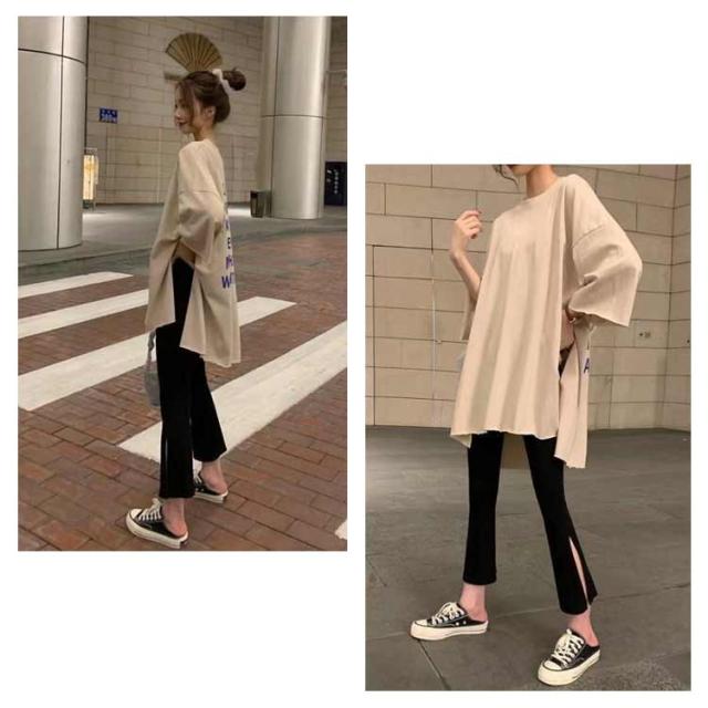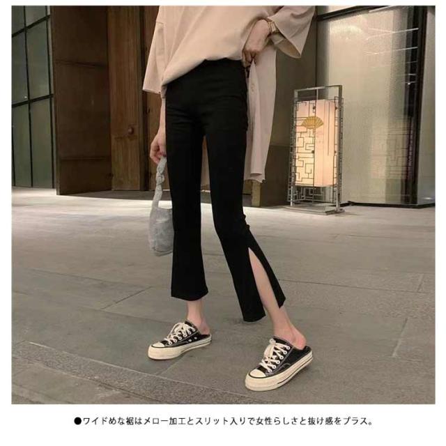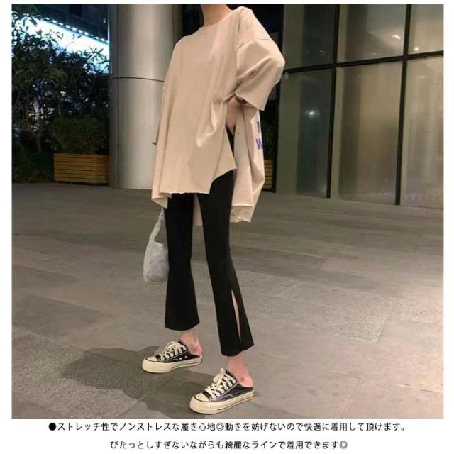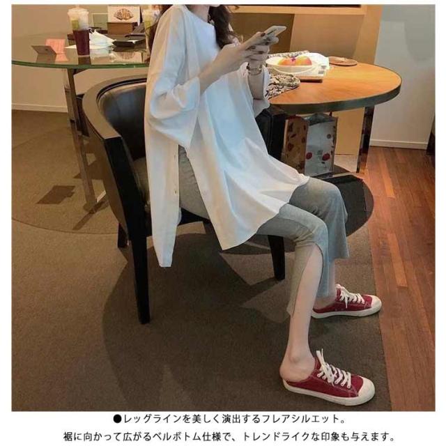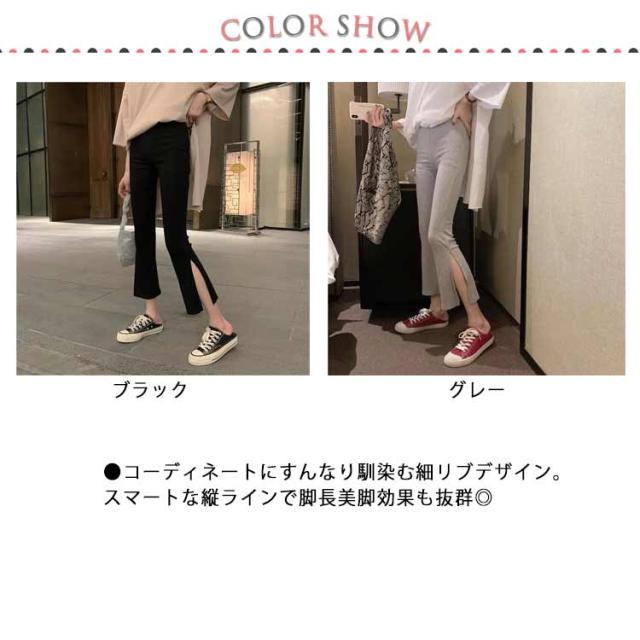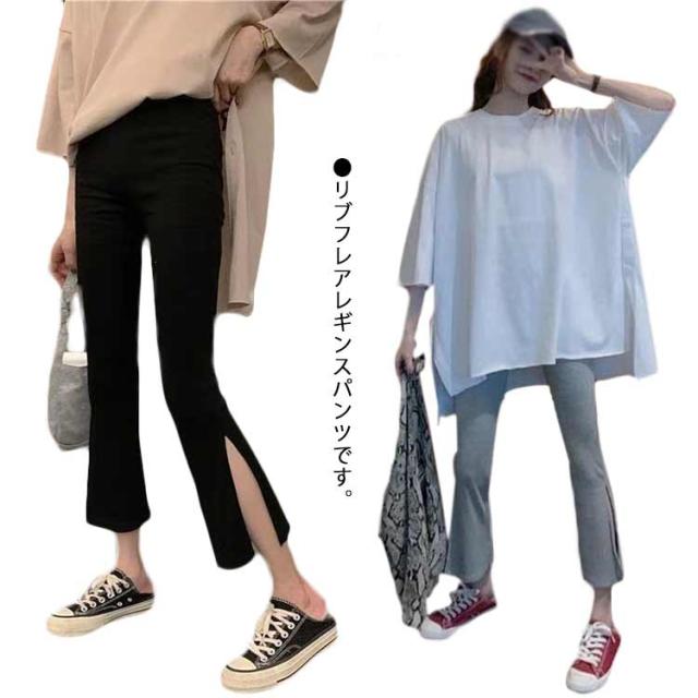 フレア パンツ リブパンツ 夏 春 送料無料 ブラック レギンス リブレギンス リブ素材 送料無料 グレー 春夏秋 リラックス サイドスリット レディース