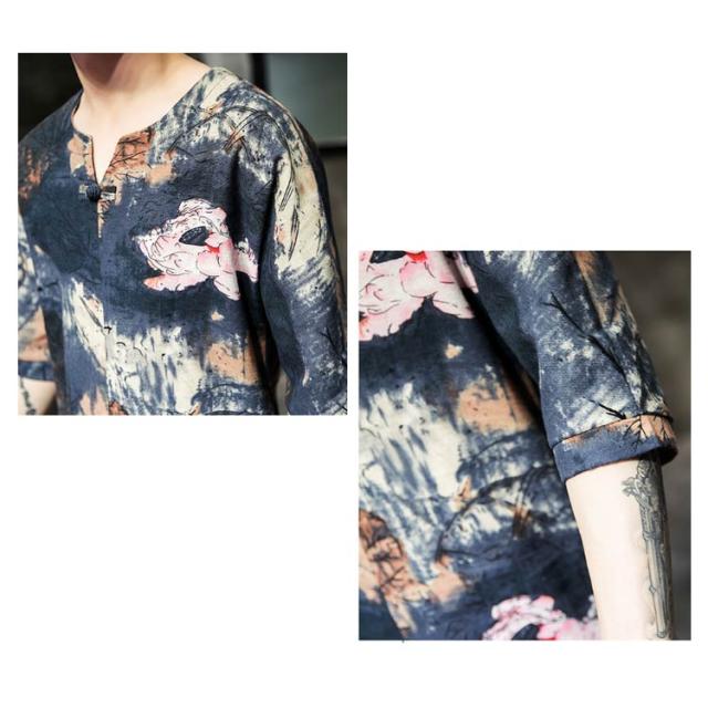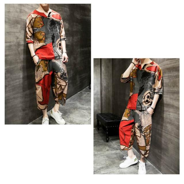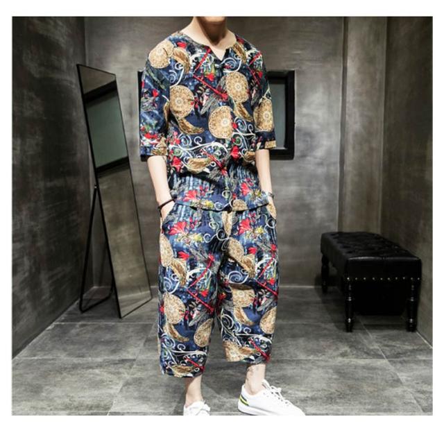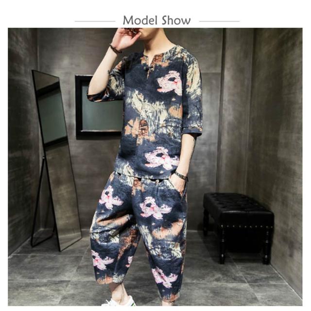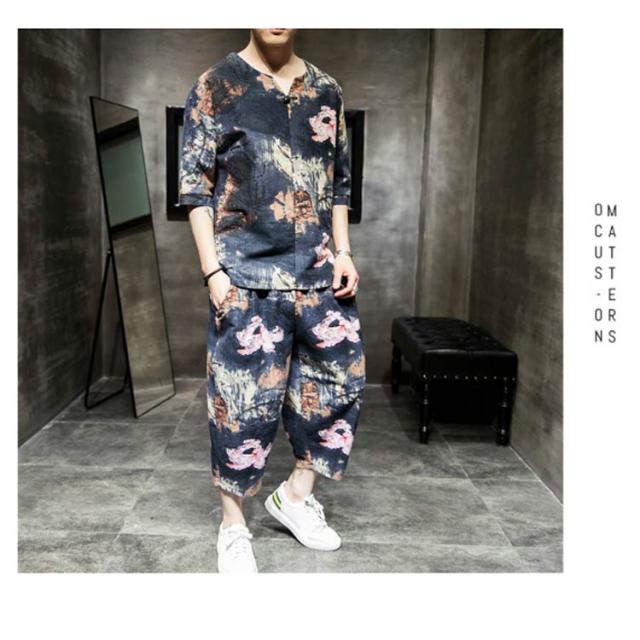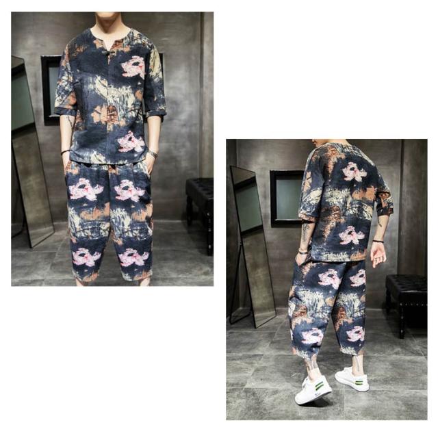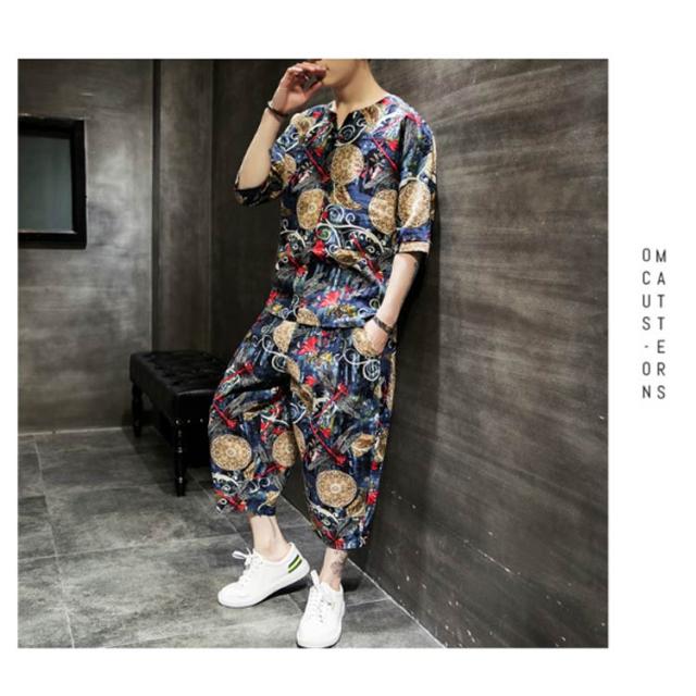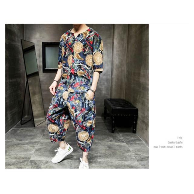 セットアップ セットアップ 綿麻 夏祭り 2点セット 花柄 父の日ギフト 半袖Tシャツ&ショートパンツ 花火大会 おしゃれ 大きいサイズ メンズ メンズ
