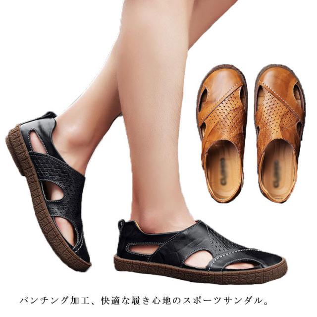 メンズ クロスサンダル スポーツサンダル 夏 革 レザー 滑り止め コンフォートサンダル 歩きやすい おしゃれ コンフォートサンダル