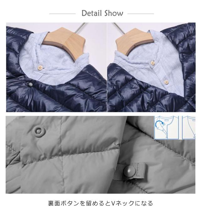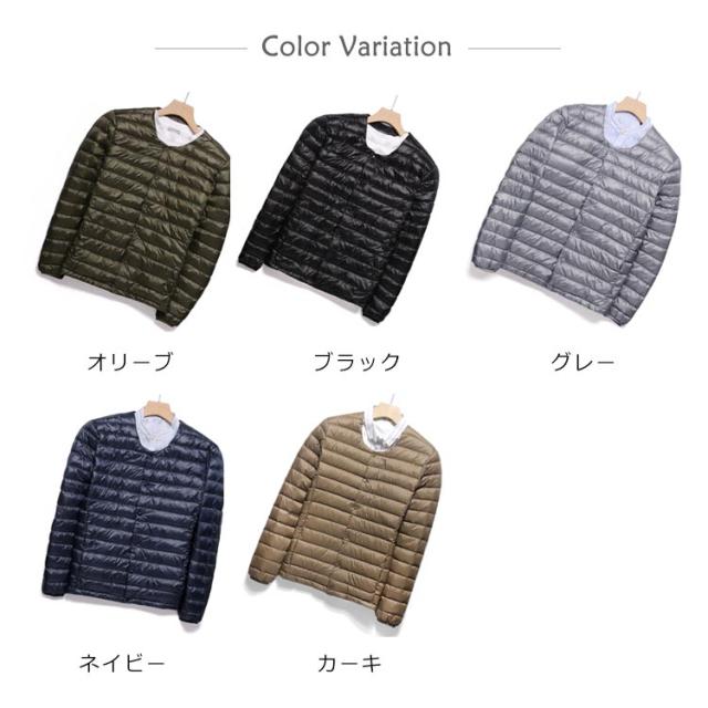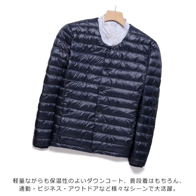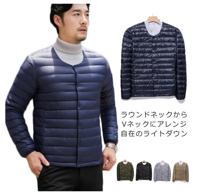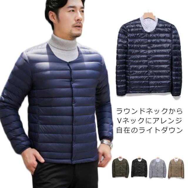 暖かい 2WAY メンズ ダウンジャケット ライトダウン ダウンコート ノーカラー インナーダウン アウター 薄手 軽量 2WAY 防寒 冷え対策 大きいサイズ ネックデザイン