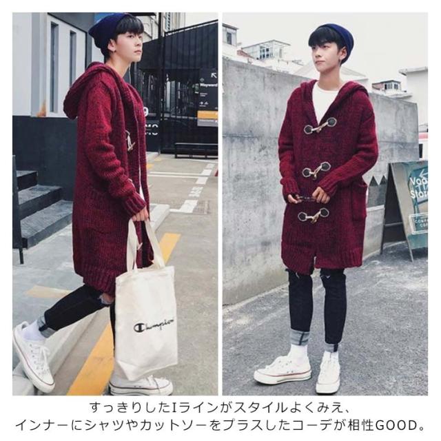 ニット 長袖 ロングカーディガン ニットカーディガン ニットコート フード付き メンズ 羽織り アウター モード系 ダッフルコート 春秋 冬 サロン系 ロングカーディガン