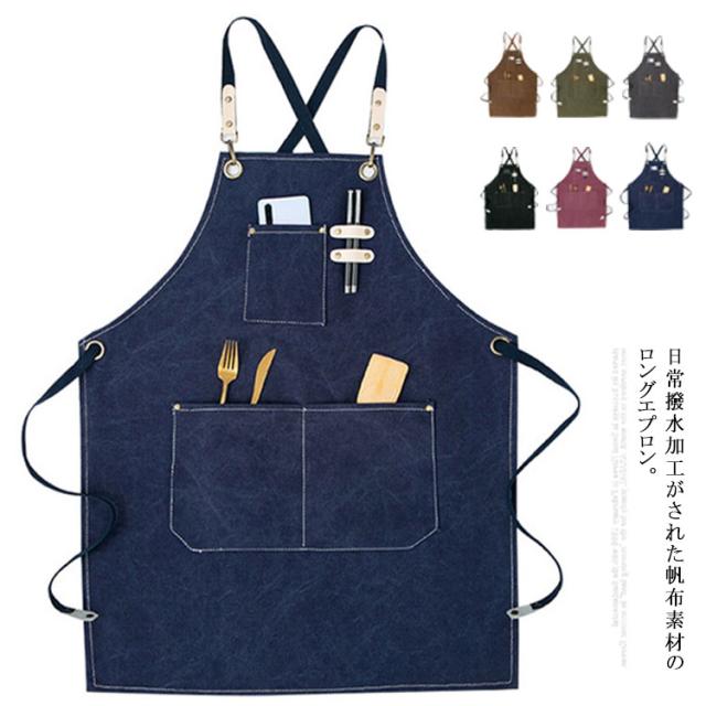 撥水加工 【送料無料】エプロン シンプル ロング スタッフエプロン 【送料無料】エプロン カフェエプロン かぶり ゆったり 前掛 おしゃれ 無地 カフェ レストラン 美容院 エステ サロンユニフォーム ワークエプロン