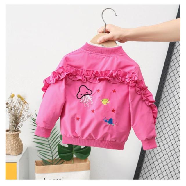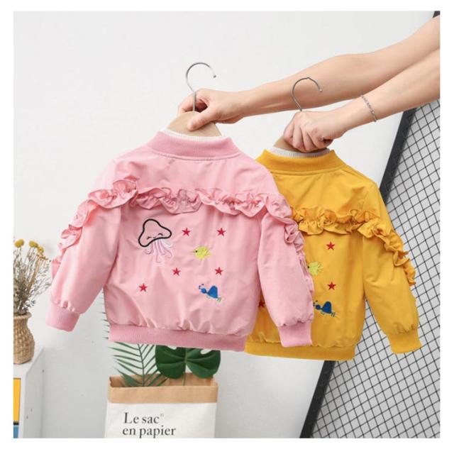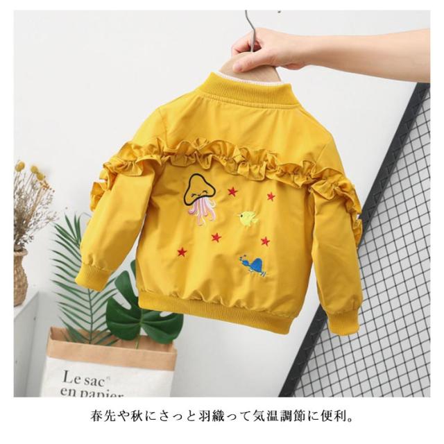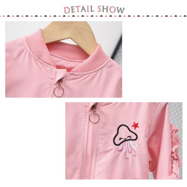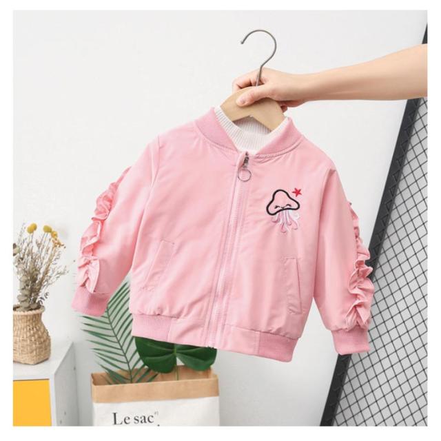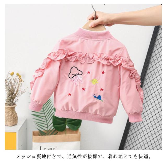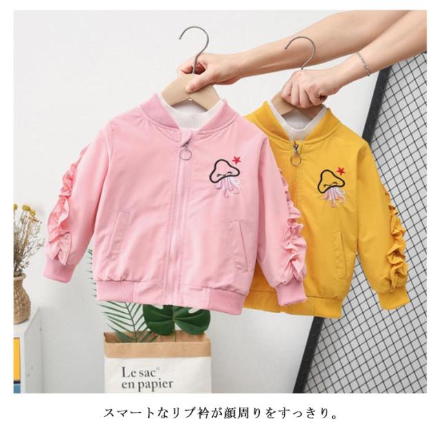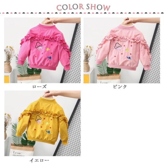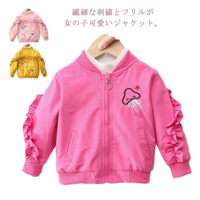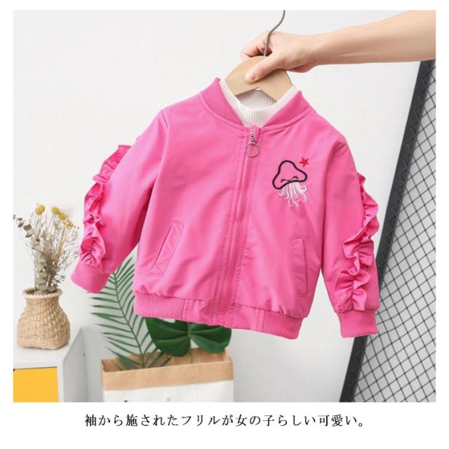 子ども服 アウター 女の子 ウインドブレーカー 刺繍 フリル ベビー服 キッズ ブルゾン ジャケット 女の子 ジップパーカー 羽織り 80cm 90cm 100cm 110cm スタジャン