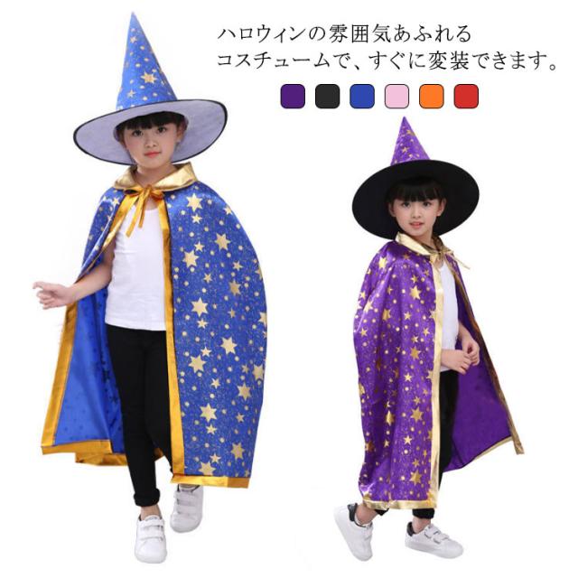 魔法使い 子供 女の子 変装 男の子 コスプレ衣装 ハロウィン ケープ 帽子 魔女 キッズ パーティー 仮装 簡単 ドレス コスチューム キッズ ハロウィン