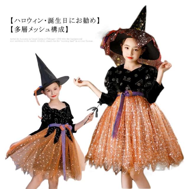 お姫様 衣装 コスプレ 女の子 プリンセス 仮装 子供 ドレス ワンピース キッズ 魔女 演出服 帽子 キラキラ 子ども 可愛い 簡単 パーティー イベント ハロウィン コスチューム ハロウィン