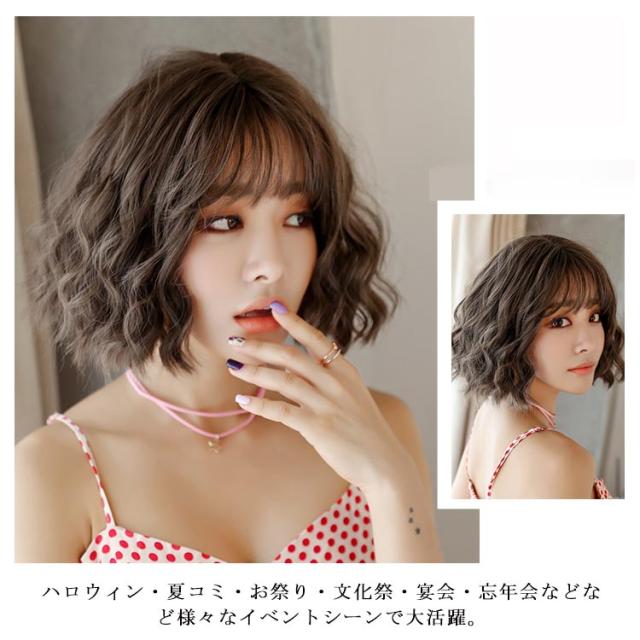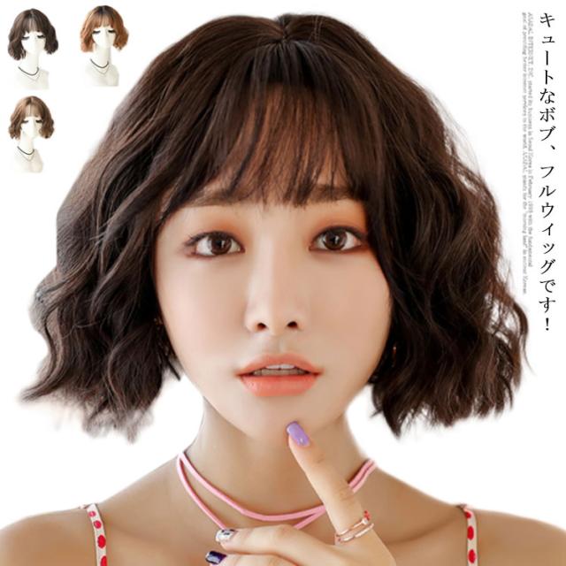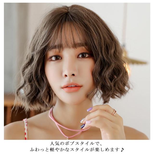 送料無料ウィッグ パーマ ゆるふわ ボブ 送料無料ウィッグ 自然 ミティアム bob ショート 内巻き ロール カール ウェーブ ぱっつん前髪 小顔効果 ボブウィッグ フルウィッグ レディース エクステ かつら ショート
