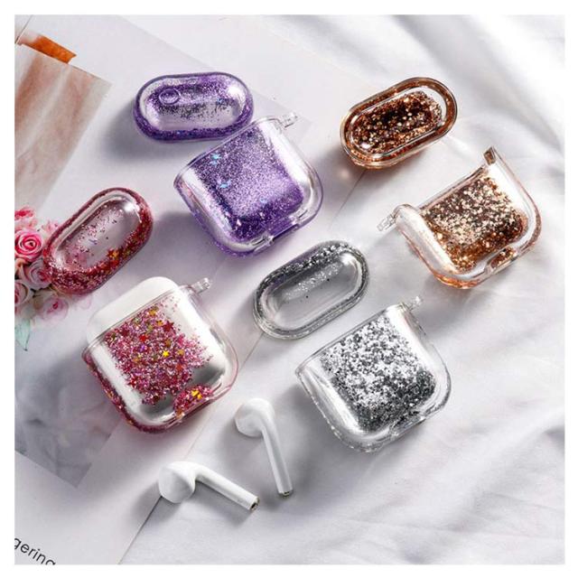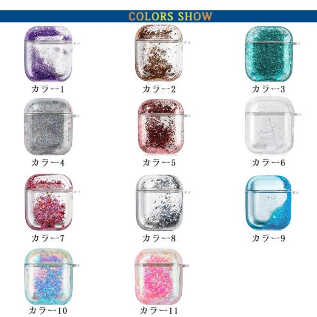 ハード AirPods ケース Pro アクセサリー アップル 保護 カバー クリア AirPods1/2対応 エアーポッズ 耐衝撃 シリコン ケース AirPods 防水 イヤホン 保護ケース ワイヤレス充電対応 キラキララメ入り 大人 女子 おしゃれ 防塵