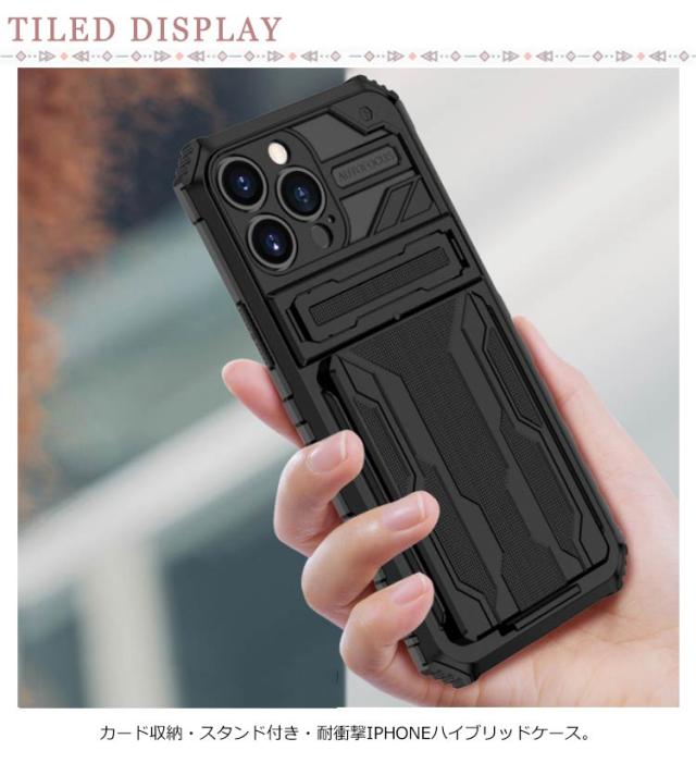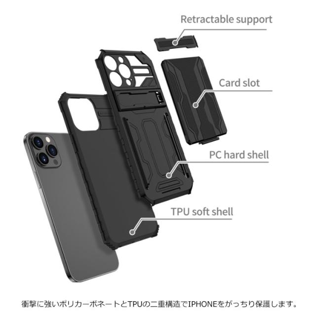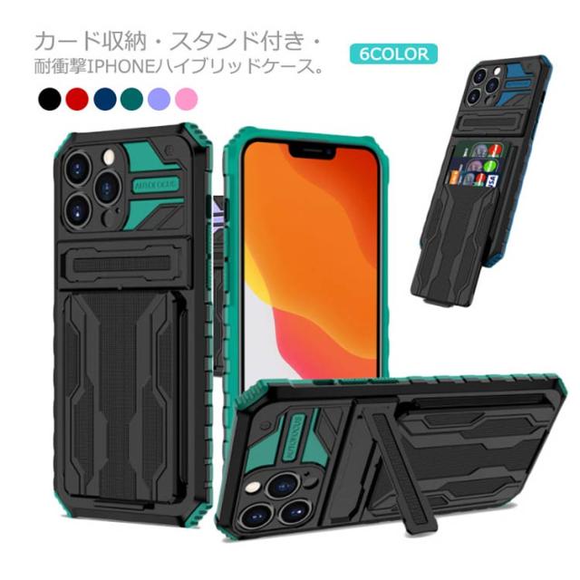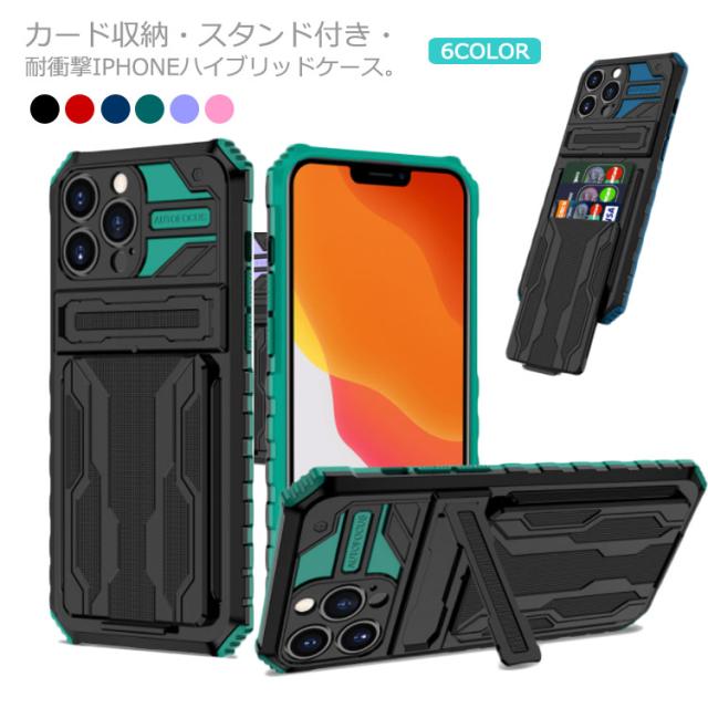 iPhone13 13Pro ケース ハイブリッド iPhone12 Pro ケース iPhone13 Max 耐衝撃 二重構造 2枚カード収納 スマホ保護カバー iPhone スマホケース スタンドケース おしゃれ かっこいい カバー