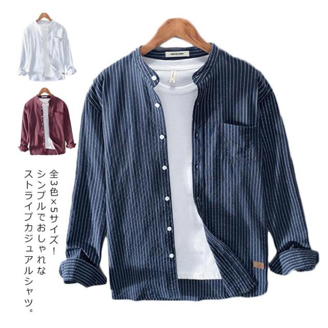 トップス カジュアルシャツ シャツ メンズ 大きいサイズ ブラウス カジュアルブラウス 長袖ブラウス 羽織り 羽織 長袖シャツ 立ち襟 ストライプ コットン 綿 送料無料 おしゃれ シンプル 送料無料