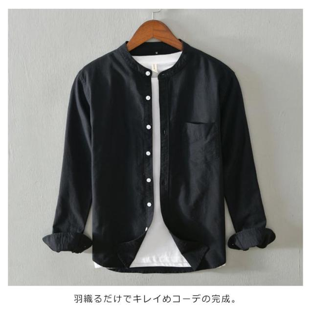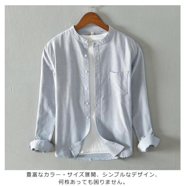 長袖シャツ 選べる2タイプ!カジュアルシャツ シャツ カジュアルブラウス 羽織り 送料無料 長袖ブラウス おしゃれ ブラウス 羽織 トップス 立ち襟 折り襟 無地 コットン 綿 大きいサイズ 送料無料 シンプル メンズ