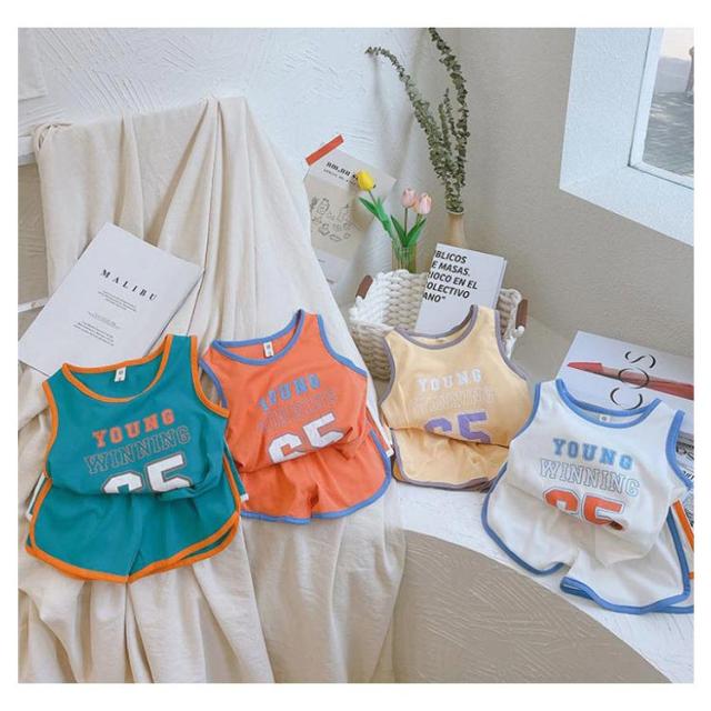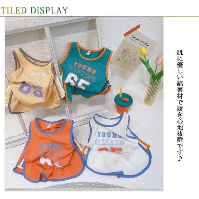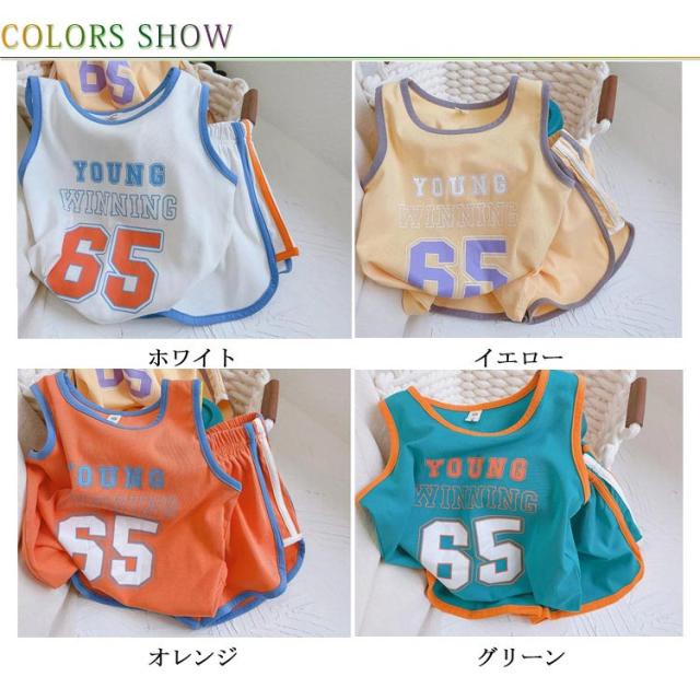セットアップ ショートパンツ 2点セット 数字 ベビー キッズ 男の子 こども 子供服 ボーイズ 夏 スポーツ バスケット ルームウエア パジャマ セットアップ タンクトップ