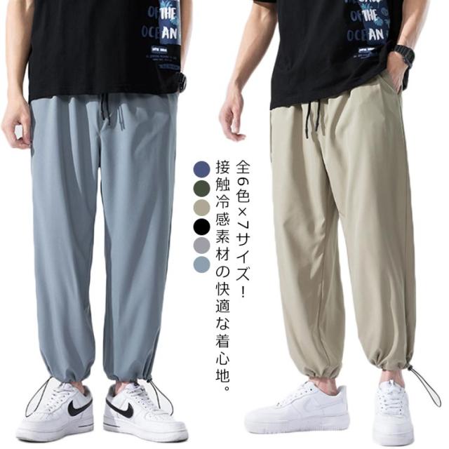 9分丈 全6色×7サイズ!接触冷感 ワイドパンツ メンズ サルエルパンツ 超伸縮 涼しい 全6色×7サイズ!接触冷感 パンツ 夏 ストレッチ ルーズ 大きいサイズ シンプル 無地 春夏 ジョガーパンツ