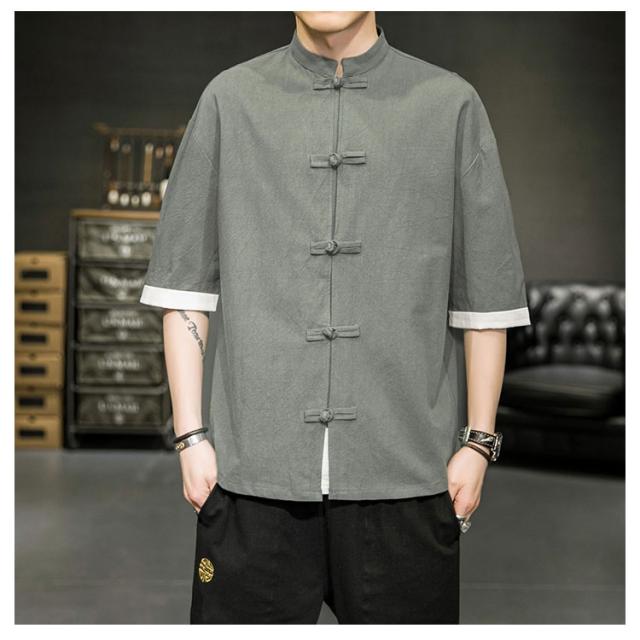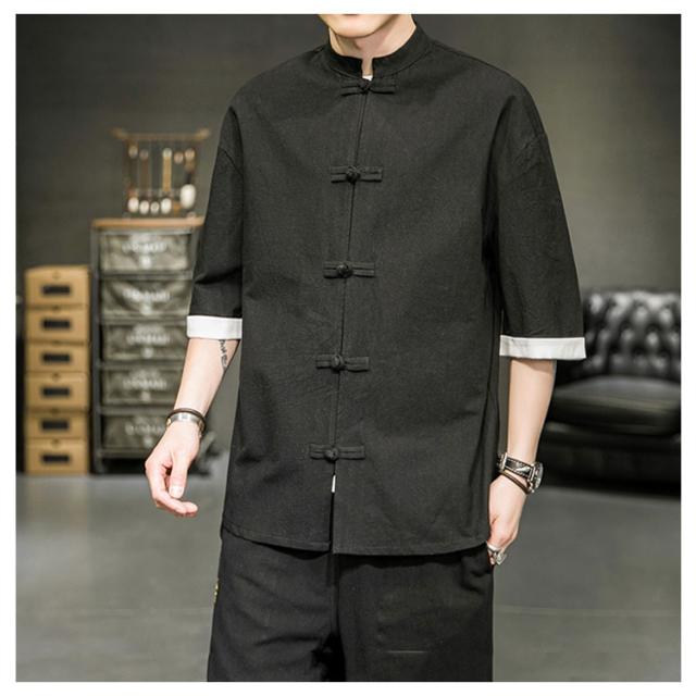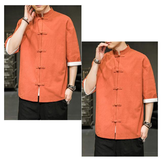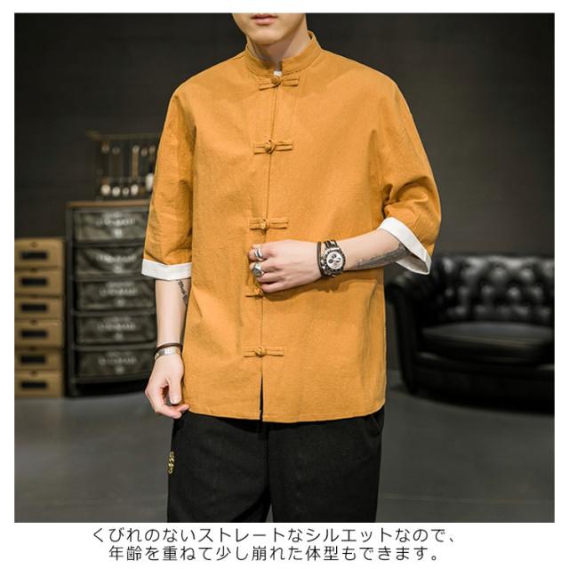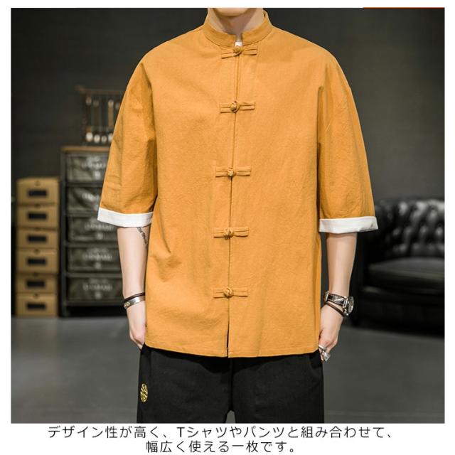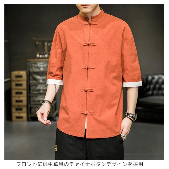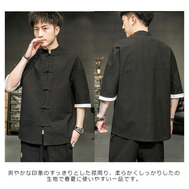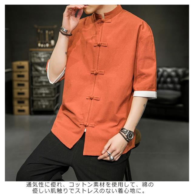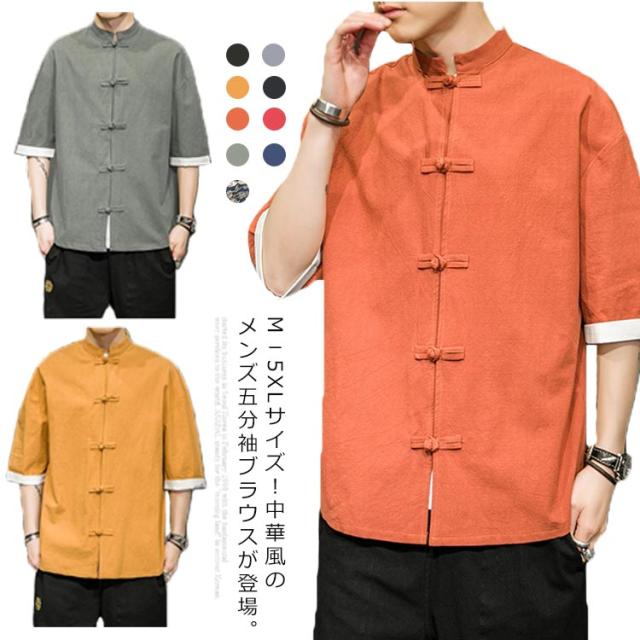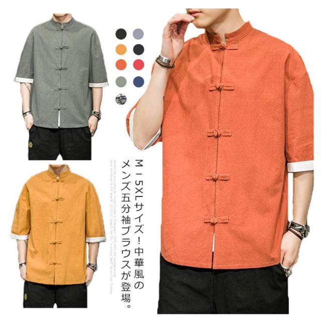 カジュアルシャツ 立ち襟シャツ メンズ 五分袖 シャツ コットン 半袖 M−5XLサイズ!夏服 チャイナボタン 立ち襟 スタンドカラー トップス 大きサイズ M−5XLサイズ!夏服