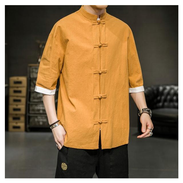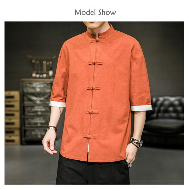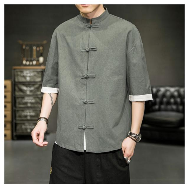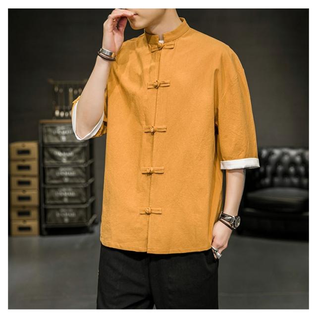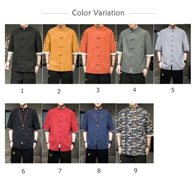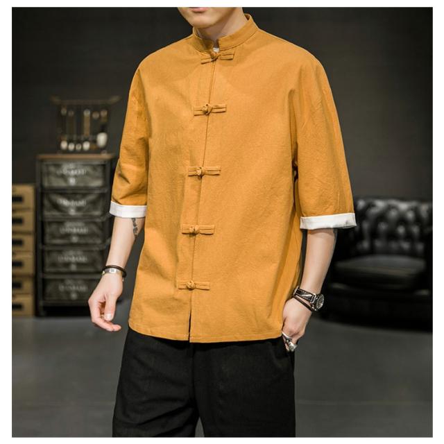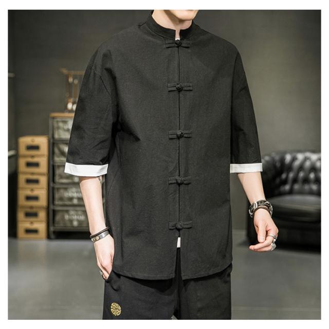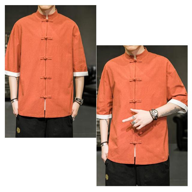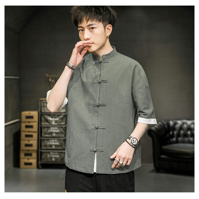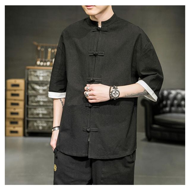 カジュアルシャツ 立ち襟シャツ メンズ 五分袖 シャツ コットン 半袖 M−5XLサイズ!夏服 チャイナボタン 立ち襟 スタンドカラー トップス 大きサイズ M−5XLサイズ!夏服