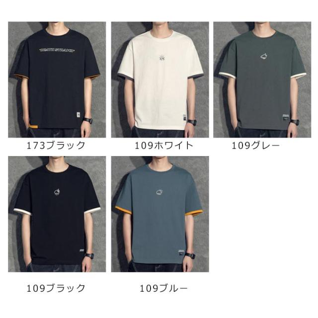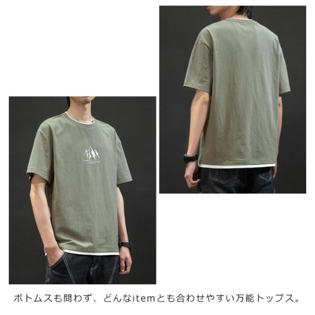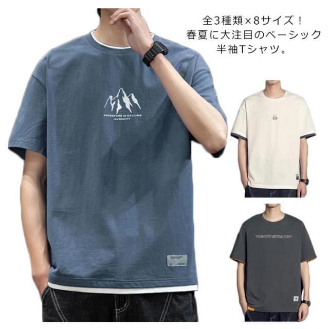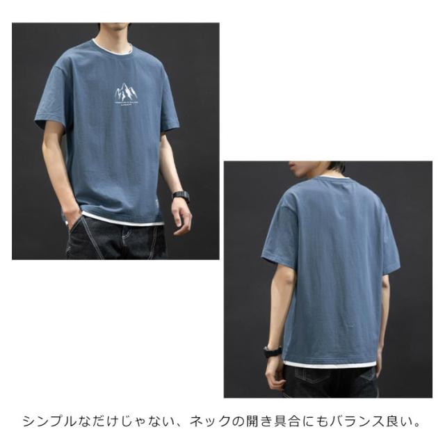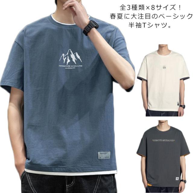 全3種類×8サイズ!重ね着風tシャツ メンズ 半袖tシャツ 綿 ロングT ラウンドネック クルーネック 全3種類×8サイズ!重ね着風tシャツ トップス カットソー コットン 大きサイズ 夏服 夏物 夏男 tシャツ