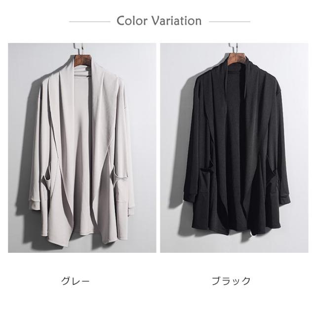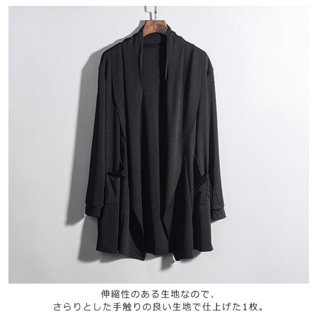 カーディガン メンズ カーデ ロングカーディガン ドレープ 冷房対策 ストレッチ 薄手 原宿系 春 ゆるカジ カーディガン アメカジ 夏 羽織り 無地 秋 ブラック ライトアウター