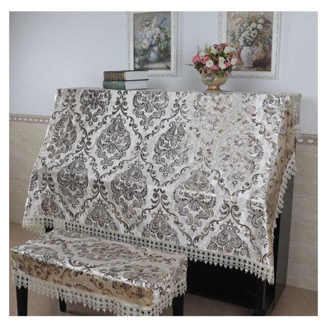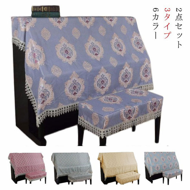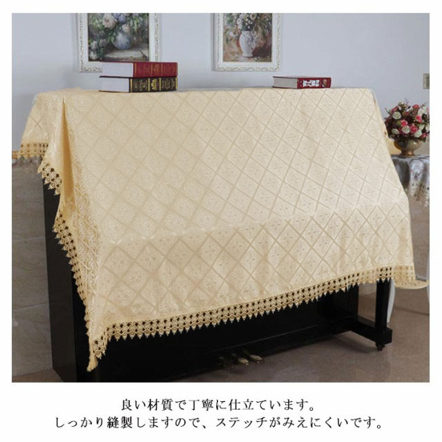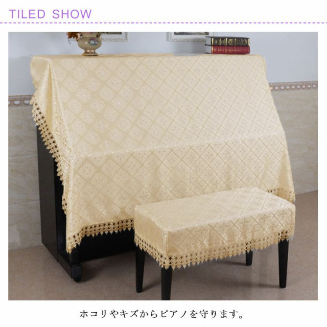 シンプル ピアノ ピアノカバー アップライト レース フリル 防塵カバー ハーフカバー 刺繍 耐久性 高級 上品 ピアノカバー カバー 厚手 直立型 シンプル アイボリー おしゃれ エレガント 2点セット