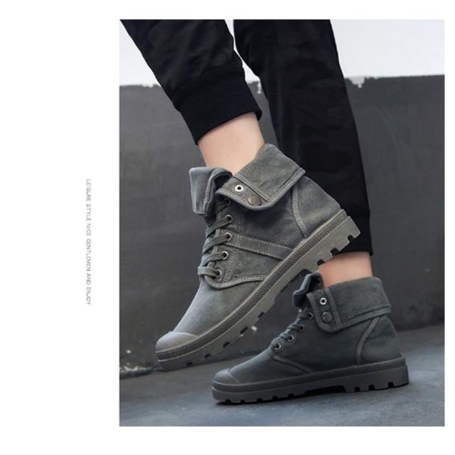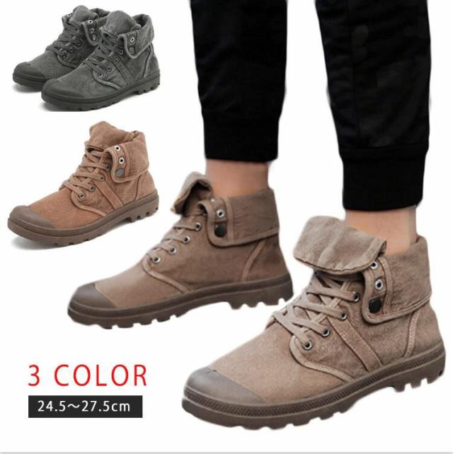 ハイカットスニーカー メンズ キャンバススニーカー キャンバス シューズ レースアップブーツ トレッキングシューズ ショートブーツ 春 夏 秋 冬 オールシーズン ウォーキングシューズ ミリタリーシューズ アウトドア コンフォート カジュアル