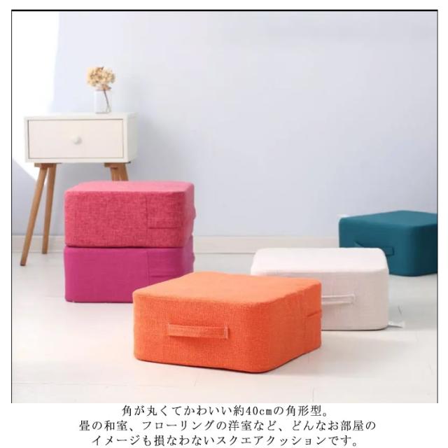 | サイズについての説明 | 【サイズ】 単位:cm 縦 約 40 横 約 40 厚さ 約 18 【カバーのお洗濯について】 ・洗濯機可(30℃、弱) ・タンブル乾燥不可 ・吊り干しがよい ・塩素系・酸素系漂白剤の使用不可 ・アイロン不可 ・ドライクリーニング不可 |