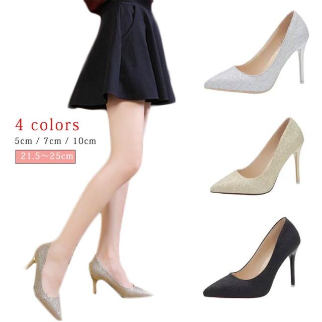 パンプス 5cm 美脚パンプス 結婚式 ポインテッドトゥ ピンヒール ハイヒール パーティー 7cm 10cm ゴールド シルバー ブラック ピンク フォーマル 成人式 美脚パンプス