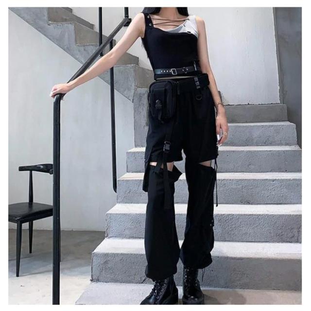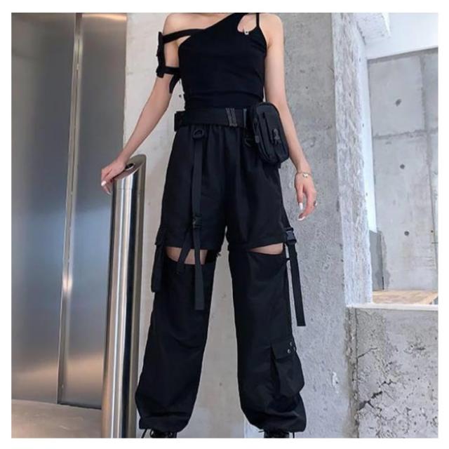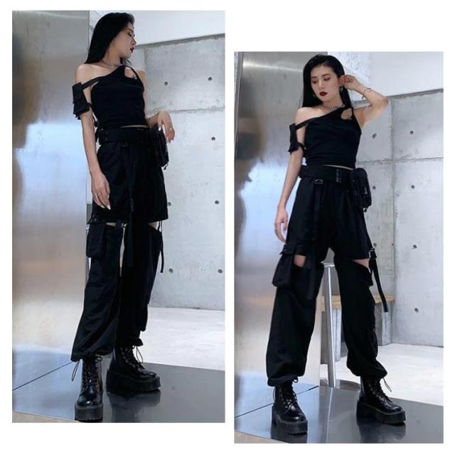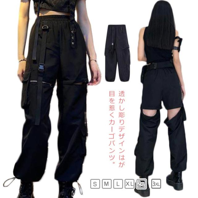 ダンス衣装 衣装 レディース ヒップホップ衣装 ヒップホップ 長ズボン 送料無料 透かし彫り ダメーパンツ カジュアル ダンスウェア スポーツ ボトムス カーゴパンツ ロング丈 ジョガーパンツ イージーパンツ ウエストゴム かっこいい 送料無料 ストリート系