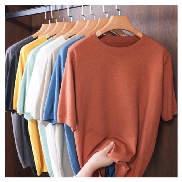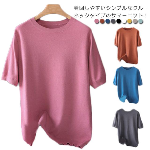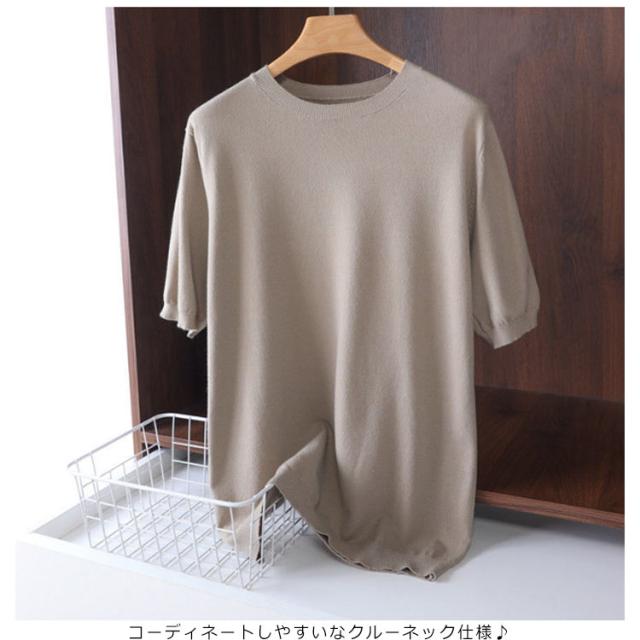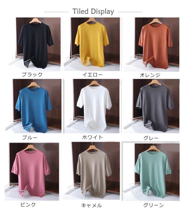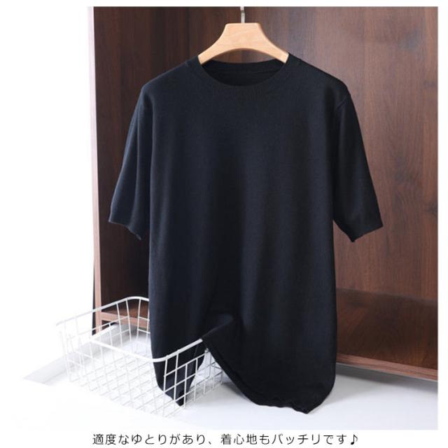 サマーニット tシャツ 薄手 トップス メンズ サマーニット 夏ニット 半袖tシャツ クルーネック プルーオーバー 柔らかい コットン サマーセーター カットソー カジュアル おしゃれ キレイめ 半袖