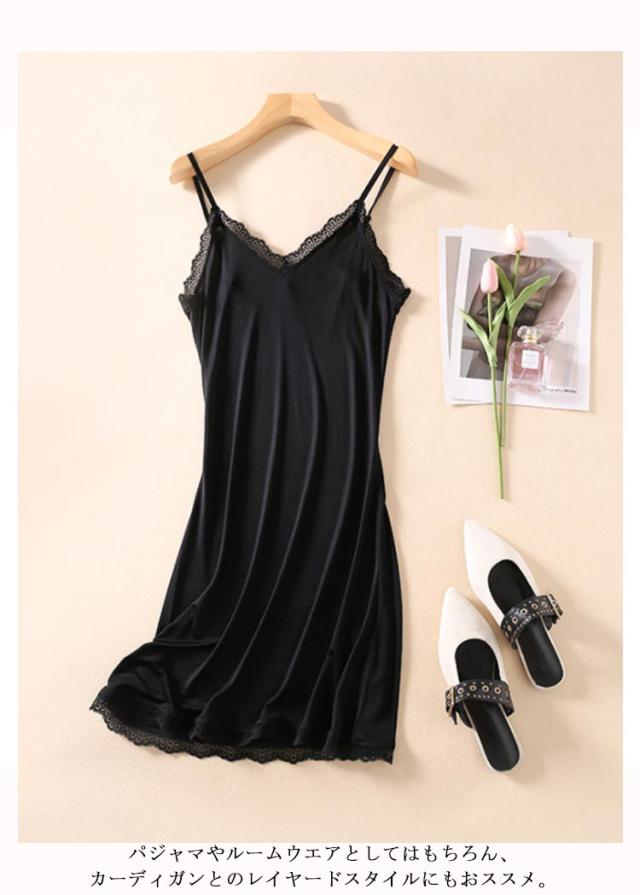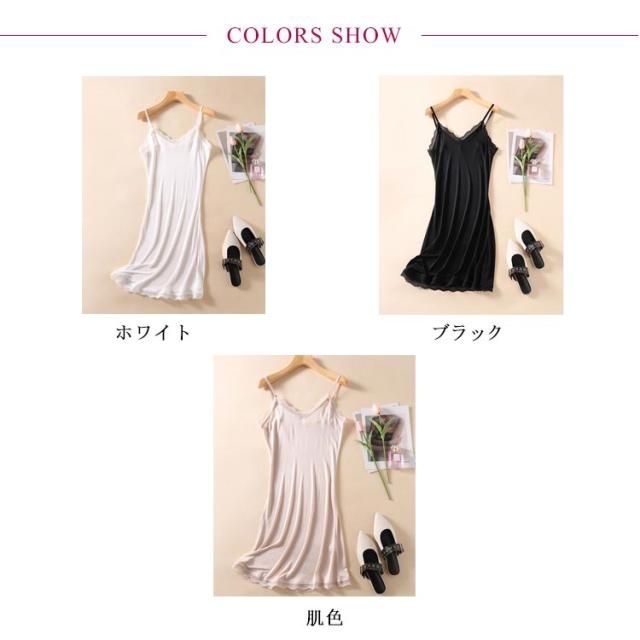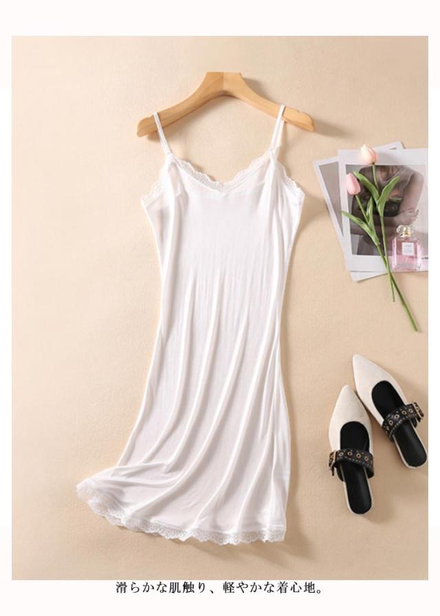 Aライン レディース ペチコート Vネック 送料無料 インナーワンピース シルク ノースリーブワンピース レース 天然シルク 膝上 膝丈 キャミワンピース キャミワンピース ひざ丈 絹 インナー キャミワンピース