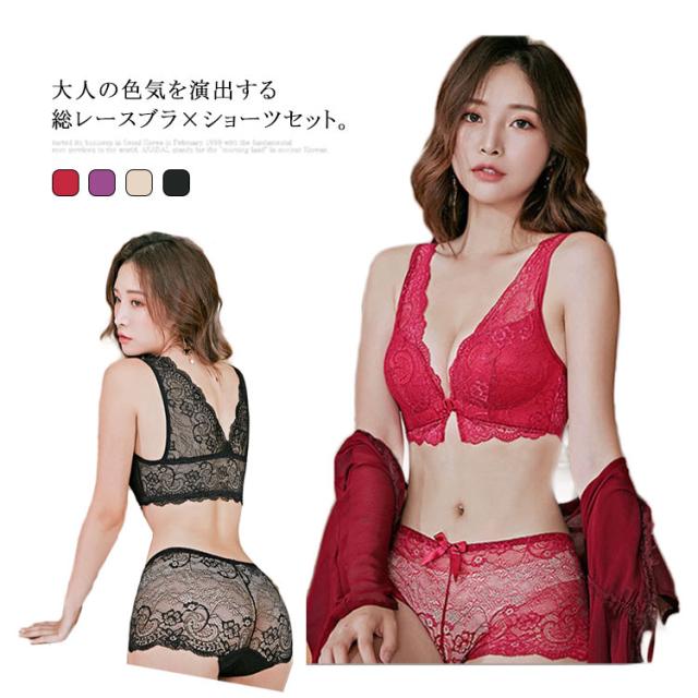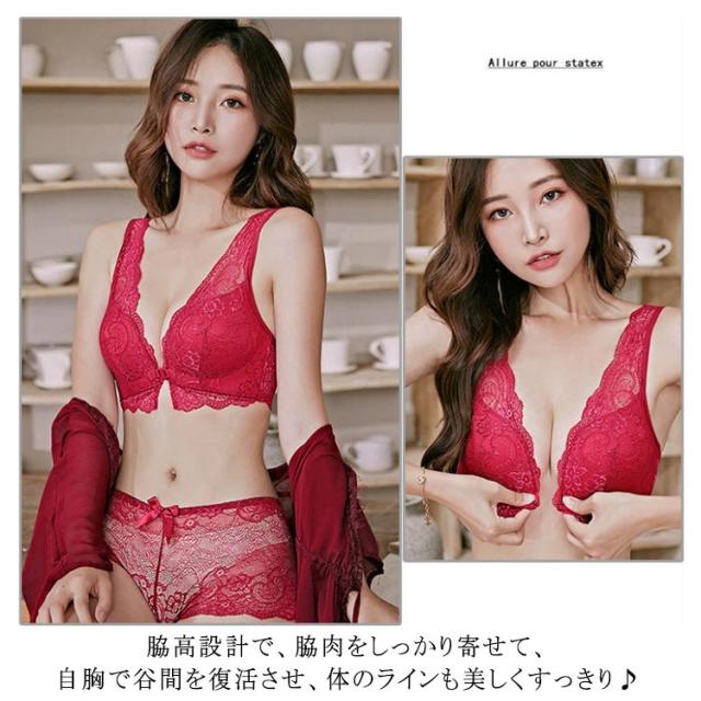 ノーストレス 送料無料 ショーツ ブラジャー 全20サイズ 上下セットアップ フロントフック 総レース 透け感 総レースショーツ 脇肉キャッチ 寄せ 盛れる 送料無料 響かない インナー 見せブラ
