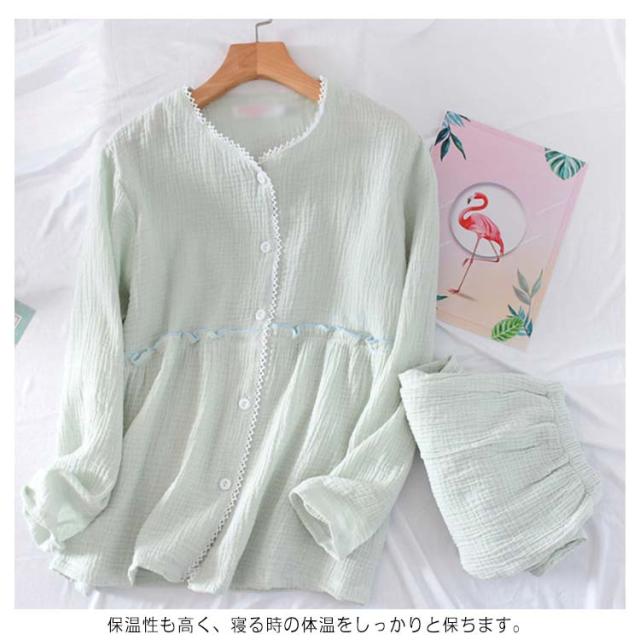 レディース 冷え性対策 二重ガーゼ パジャマ 部屋着 送料無料 綿100% 長袖 シニア ダブルガーゼ 夏 春 哺乳 ガーゼパジャマ 皺感 長ズボン 秋 母の日 授乳 敏感肌 高齢者 ふんわり 柔らかい ナイトウェア 前開き ルームウェア ルームウェア
