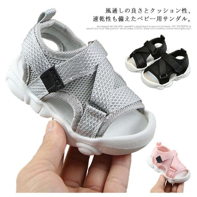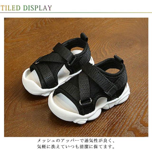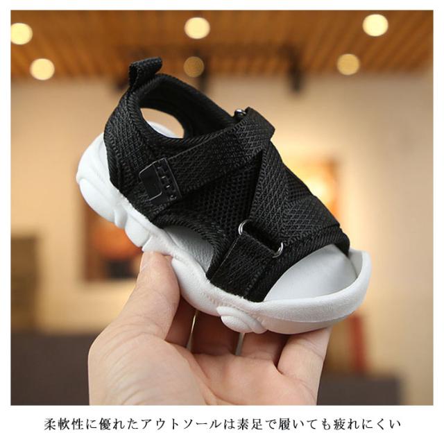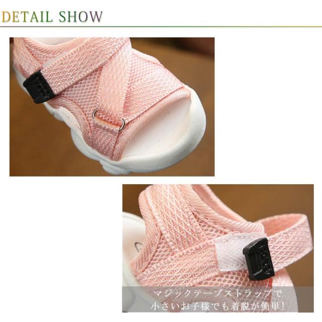 16 サンダル マジックテープ こどもサンダル メッシュ シューズ キッズ 通気 女の子 キッズ 子供靴 子供シューズ アウトドア 水遊び ストラップ メッシュサンダル 水陸両用 ラバーサンダル サマーシューズ 14.5