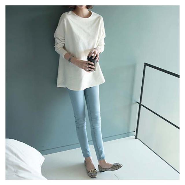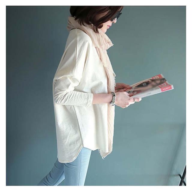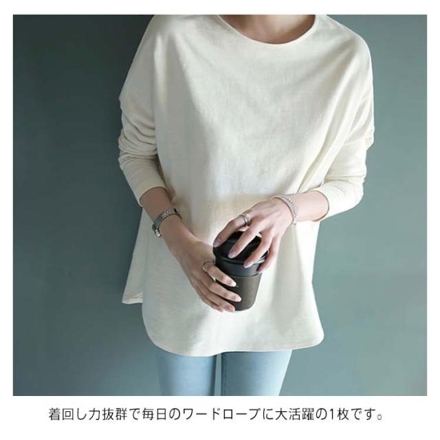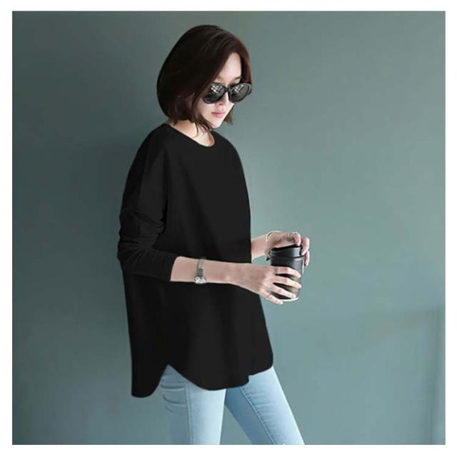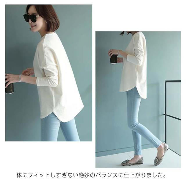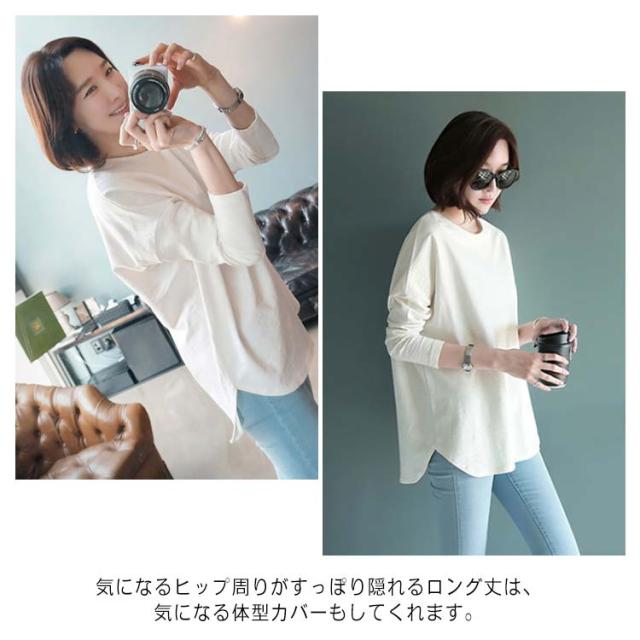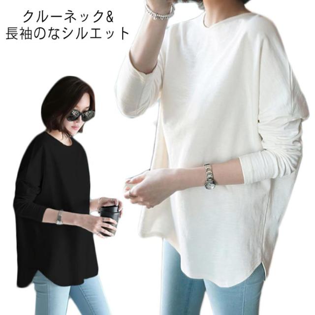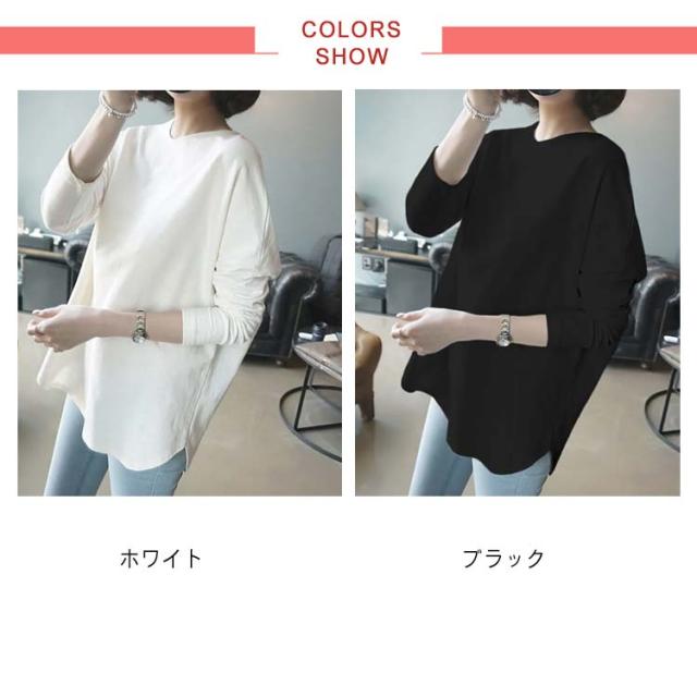 プルオーバー tシャツ 春秋 ロングtシャツ 長袖 送料無料 カットソー 綿 ラウンドヘム ゆったり レディース M~2XL オールシーズン オシャレ 無地 ホワイト tシャツ
