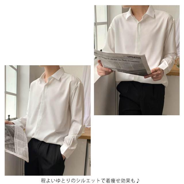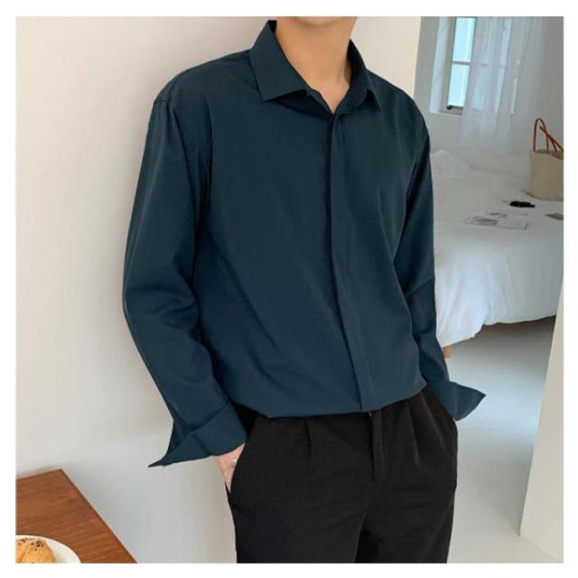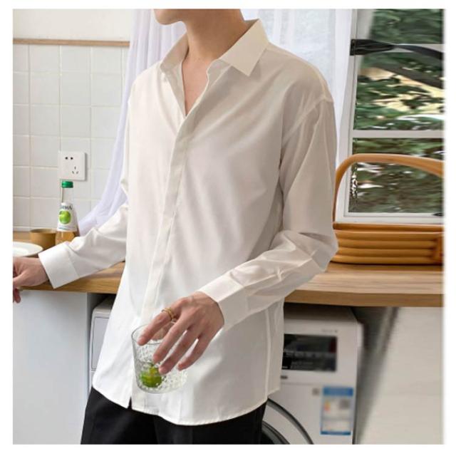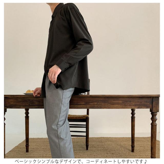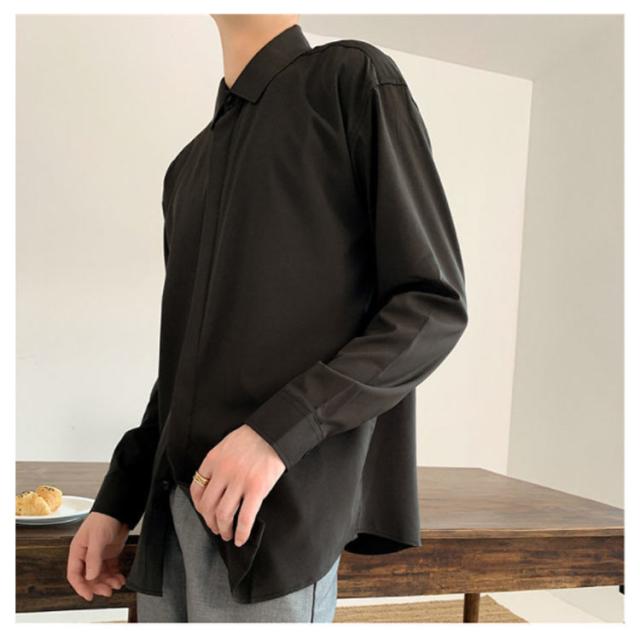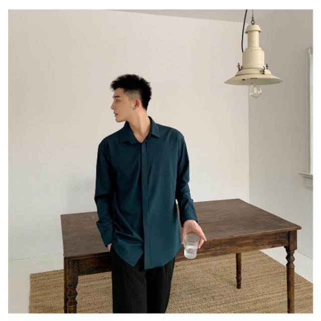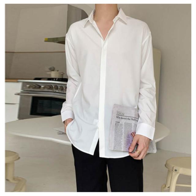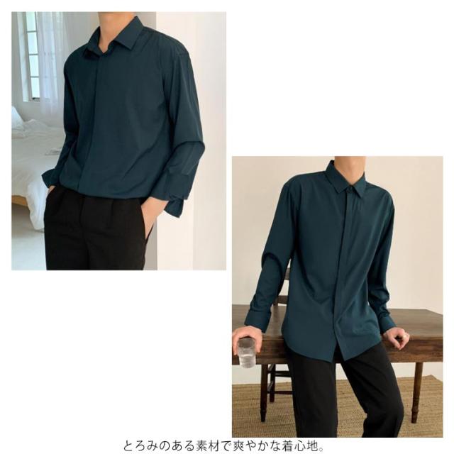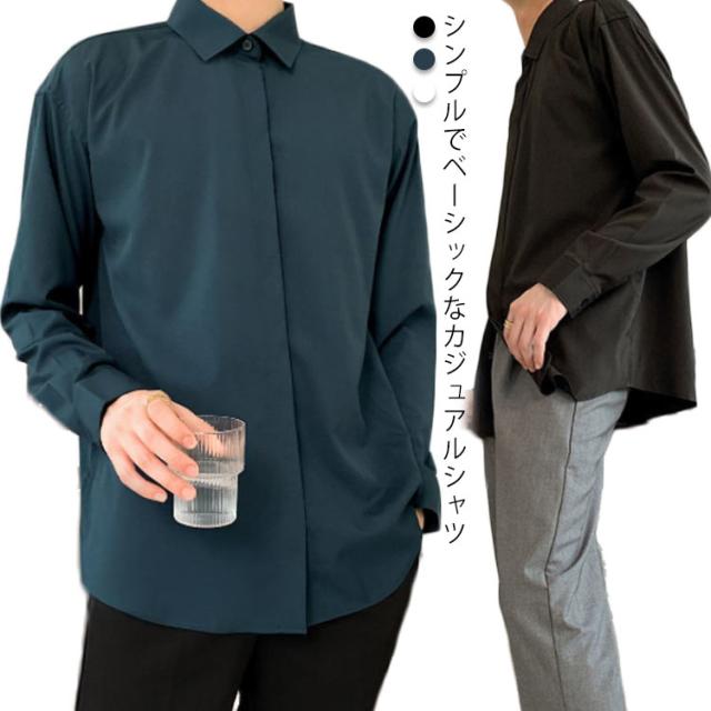 秋 シャツ 長袖シャツ カジュアルシャツ とろみ 無地 韓国ファッション カジュアルシャツ メンズ メンズ
