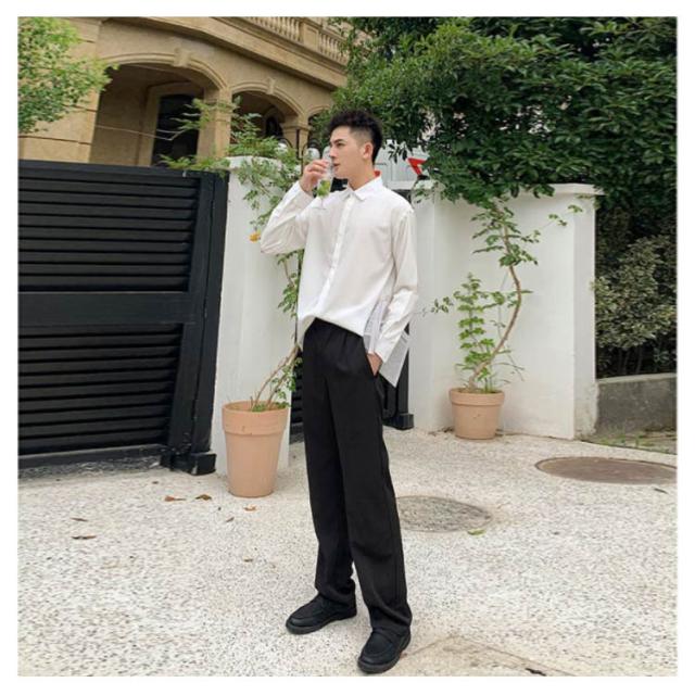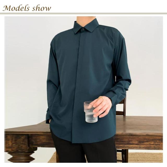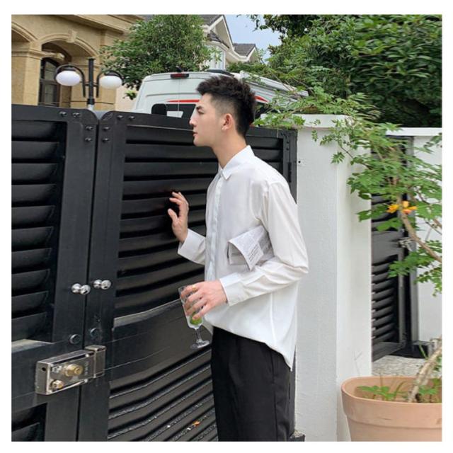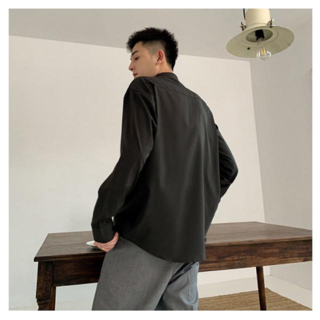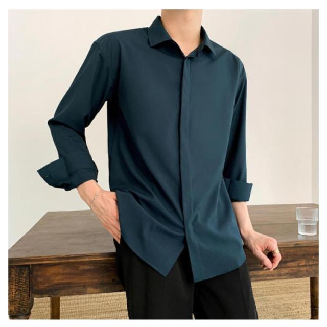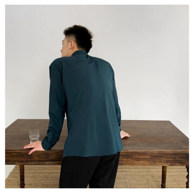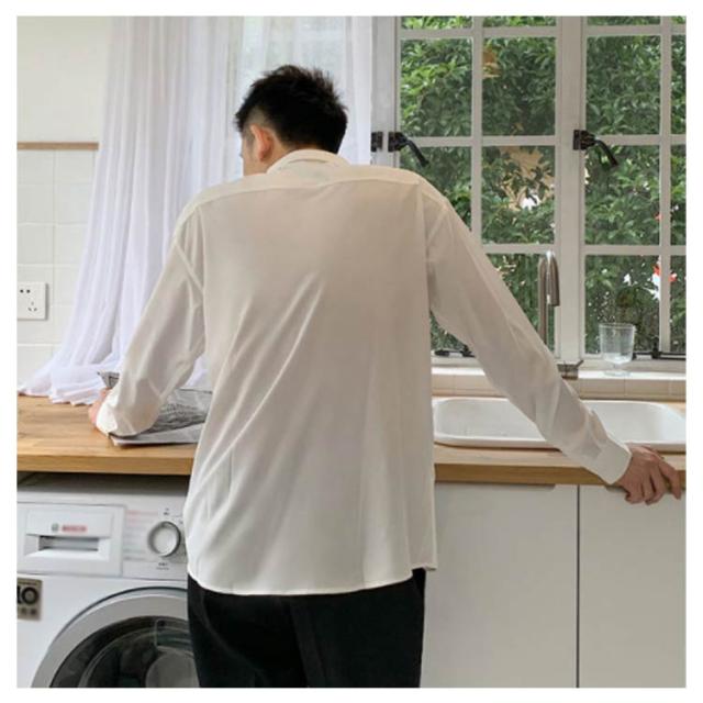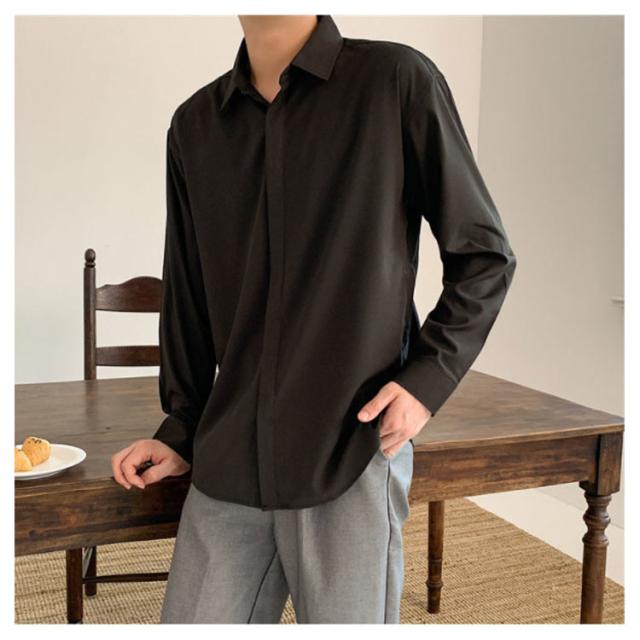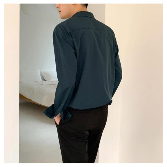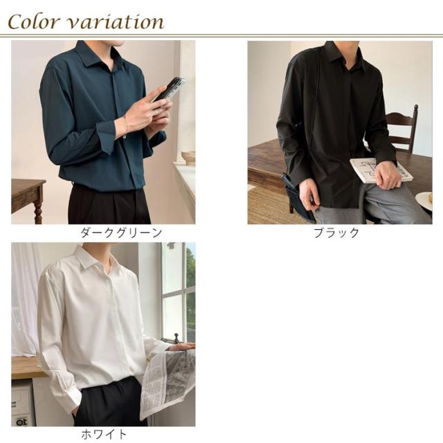 秋 シャツ 長袖シャツ カジュアルシャツ とろみ 無地 韓国ファッション カジュアルシャツ メンズ メンズ