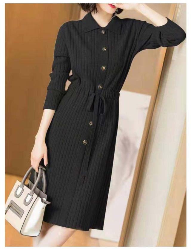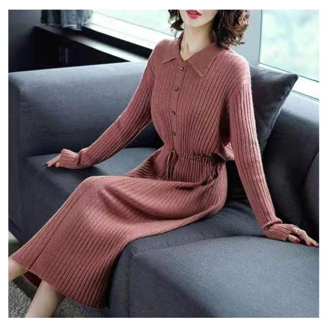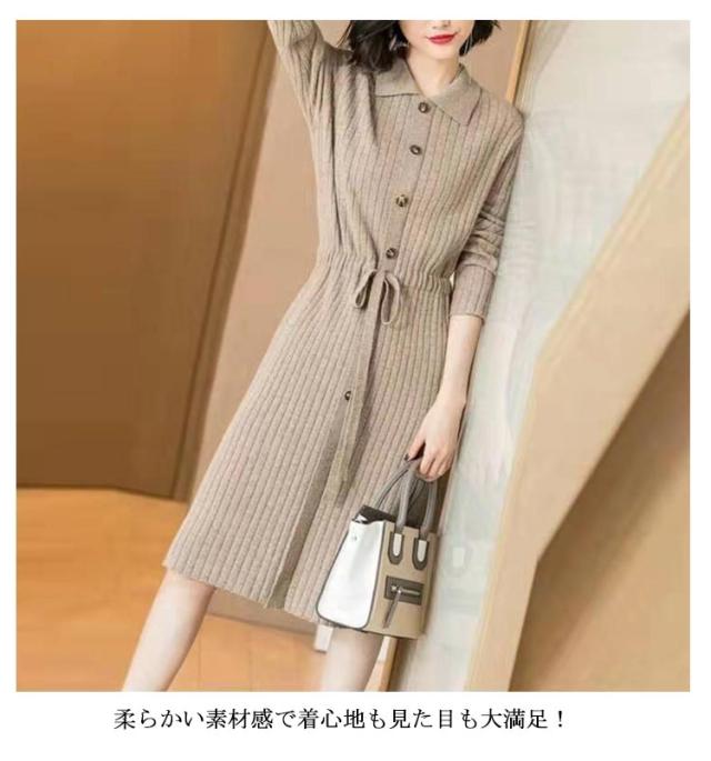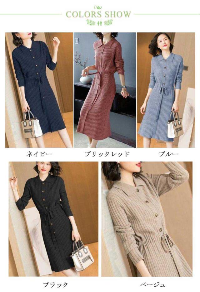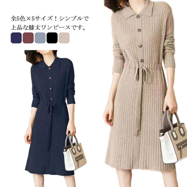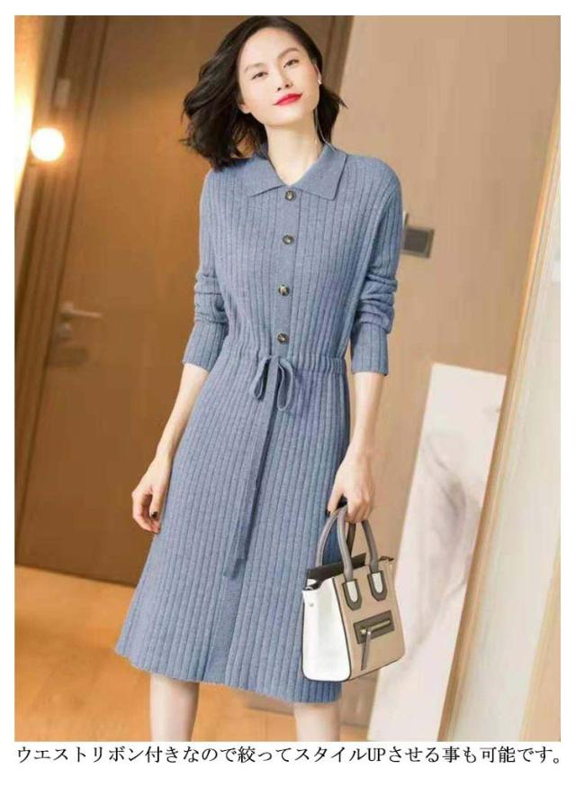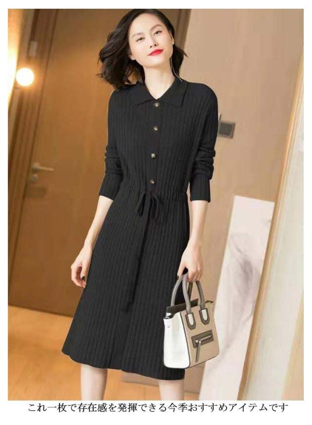 暖かい 20代 ニットワンピ ニット フロントボタン 40代 ロングワンピース 長袖 秋冬ワンピース フォーマル レディース ウエストリボン キレイめ ワンピース 厚手 上品 50代 膝丈 30代 ワンピース お呼ばれ 結婚式 ワンピース