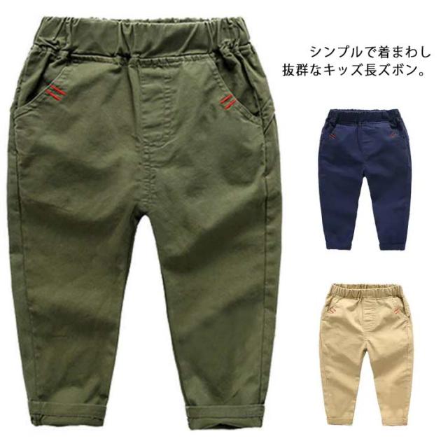 ウエストゴム 男の子 無地 ベビー チノパン キッズ 長ズボン 子供服 ボトムス パンツ 100 シンプル ロングパンツ 春秋 送料無料 90 ロングパンツ 110 カジュアルパンツ