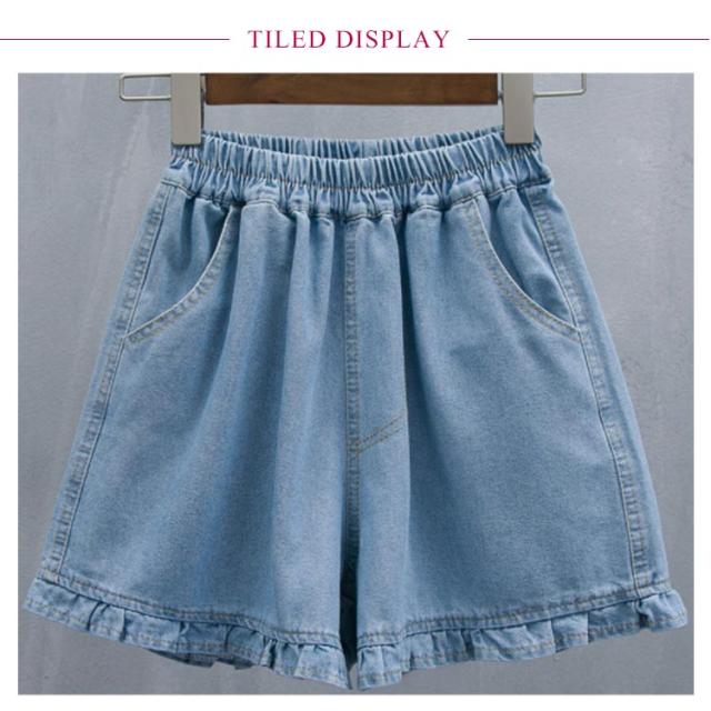 ゆったり S 体型カバー デニムショートパンツ 3分丈 短パン デニムショートパンツ ハイウエスト ワイドパンツ ウエストゴム ショートパンツ 裾フリル 薄手 送料無料 M 2XL L XL レディース 3XL デニムパンツ